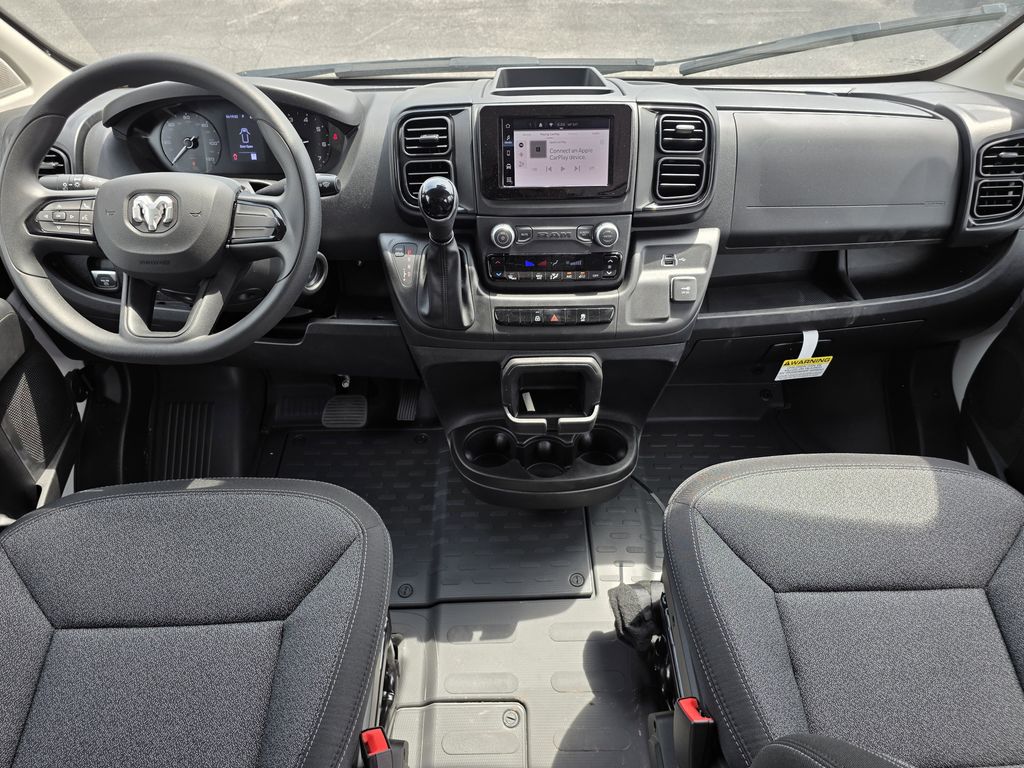 This 2025 Ram ProMaster 1500 Low Roof in Bright White Clearcoat includes the following features: 3.6L V6 24V VVT 9-Speed 948TE Automatic FWD Quick Order Package 22B Tradesman w/Pass Seat (4-Way Manual Adjust Front Passenger Seat and Passenger Bucket Seat), 4 Speakers, 4-Wheel Disc Brakes, 4.08 Axle Ratio, 4G LTE Wi-Fi Hotspot, ABS brakes, Air Conditioning, AM/FM radio: SiriusXM, Apple CarPlay, Apple CarPlay/Android Auto, Black/Gray Seats, Bodyside moldings, Brake assist, Cloth Bucket Seats, Connectivity - US/Canada, Driver door bin, Driver Seat Armrest, Driver's Seat Mounted Armrest, Electronic Stability Control, Exterior Mirrors w/Supplemental Signals, For Details, Visit DriveUconnect.com, For More Info, Call 800-643-2112, Front anti-roll bar, Front Bucket Seats, Front License Plate Bracket, Front reading lights, Front wheel independent suspension, Global Telematics Box Module (TBM), Google Android Auto, GPS Antenna Input, Illuminated entry, Low tire pressure warning, Manufacturer's Statement of Origin, Medium Duty Suspension, Outside temperature display, Overhead airbag, Overhead console, ParkView Rear Back-Up Camera, Passenger door bin, Power steering, Power windows, Radio: Uconnect 5 w/7" Display, Remote keyless entry, SiriusXM Radio Service, Steering wheel mounted audio controls, Tachometer, Telescoping steering wheel, Traction control, Trip computer, Turn signal indicator mirrors, Variably intermittent wipers, Wheel Center Cap, Wheels: 16" x 6.0" Steel, and Wood FlooR.