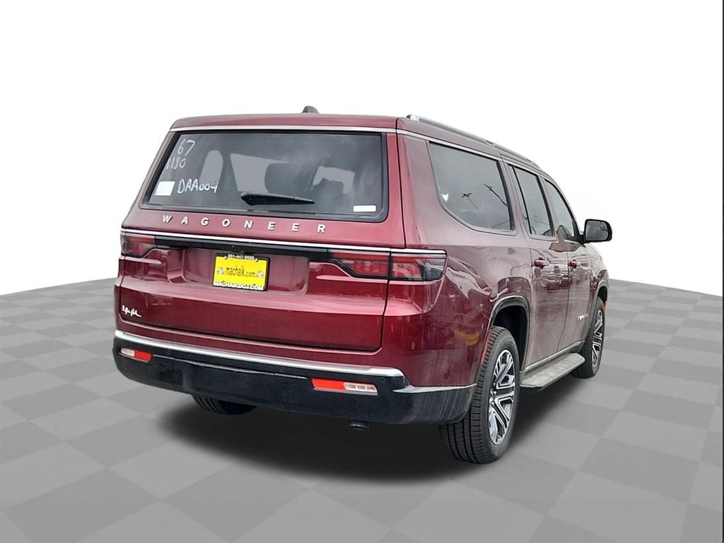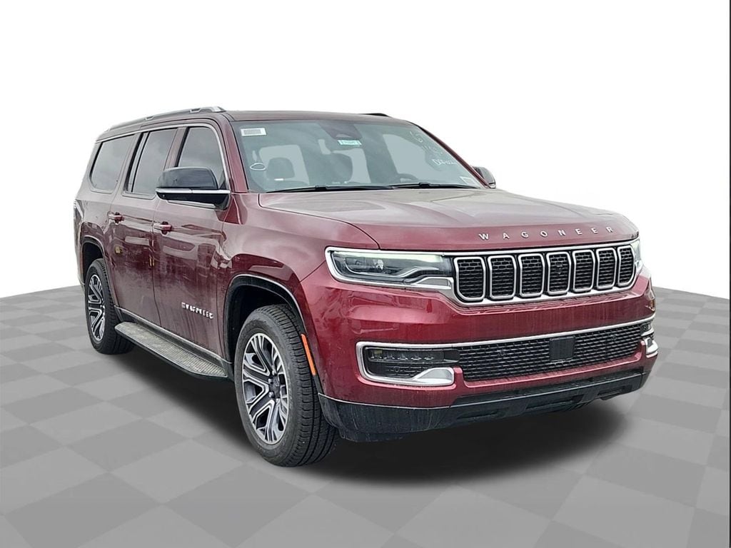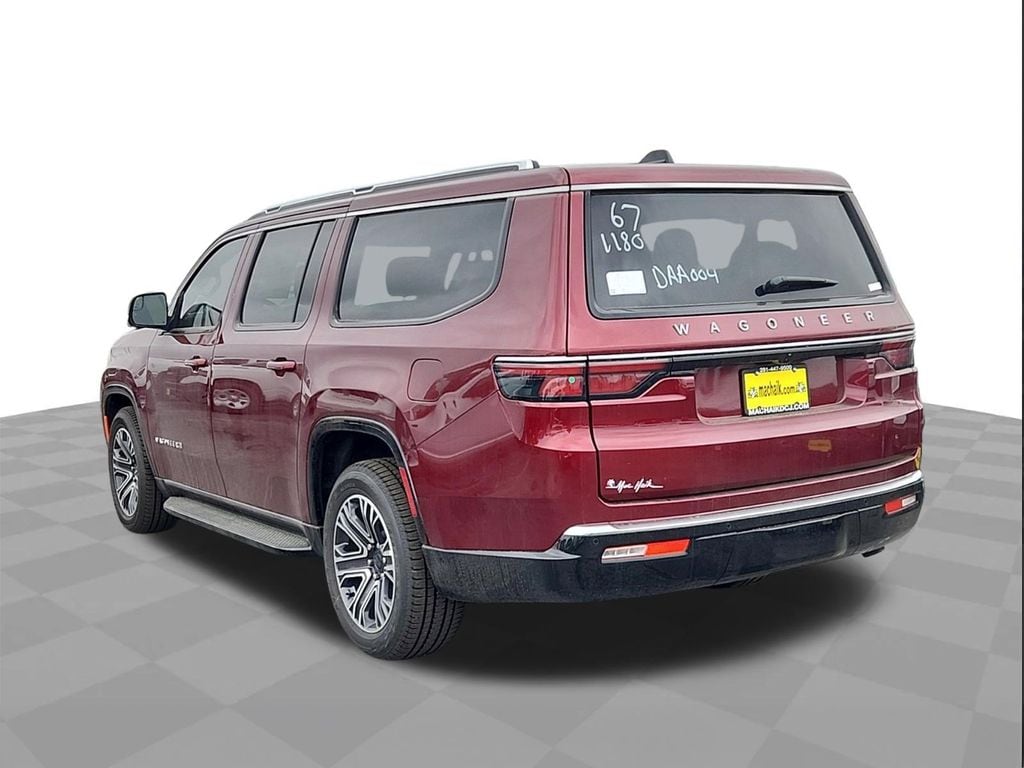 This 2024 Jeep Wagoneer L in Velvet Red Pearlcoat includes the following features: 3.0L I6 8-Speed Automatic 4WD Convenience Group I (2nd Row Manual Window Shades, Active Lane Management System, Adaptive Cruise Control w/Stop & Go, Auto High Beam Headlamp Control, Heated Second Row Seats, P&P Park & Unpark Assist w/Stop System, Rack Cargo Management System, Rain Sensitive Windshield Wipers, Side Distance Warning, and Surround View Camera System), Premium Group I (3 Panel Sunroof, Adjustable Roof Rail Crossbars, Reversible Carpet/Vinyl Cargo Mat, and Wheels: 20" x 9.0" Premium 2 Aluminum), Quick Order Package 25E, 10 Speakers, 3.55 Rear Axle Ratio, 3rd row seats: bench, 4-Wheel Disc Brakes, ABS brakes, Adjustable pedals, Air Conditioning, Alloy wheels, AM/FM radio: SiriusXM with 360L, Anti-whiplash front head restraints, Apple CarPlay/Android Auto, Audio memory, Auto-dimming door mirrors, Auto-dimming Rear-View mirror, Auto-leveling suspension, Automatic temperature control, Brake assist, Bumpers: body-color, Compass, Delay-off headlights, Driver door bin, Driver vanity mirror, Driver's Seat Mounted Armrest, Dual front impact airbags, Dual front side impact airbags, Electronic Stability Control, Emergency communication system: Wagoneer Connect, Exterior Parking Camera Rear, Four wheel independent suspension, Front anti-roll bar, Front Bucket Seats, Front Center Armrest w/Storage, Front dual zone A/C, Front fog lights, Front reading lights, Fully automatic headlights, Garage door transmitter, Heated door mirrors, Heated front seats, Heated steering wheel, Illuminated entry, Knee airbag, Leather Trimmed Bucket Seats, Low tire pressure warning, Memory seat, Navigation System, Normal Duty Suspension, Occupant sensing airbag, Outside temperature display, Overhead airbag, Overhead console, Panic alarm, Passenger door bin, Passenger seat mounted armrest, Passenger vanity mirror, Pedal memory, Power adjustable front head restraints, Power door mirrors, Power driver seat, Power Liftgate, Power passenger seat, Power steering, Power windows, Radio data system, Radio: Uconnect 5 Nav w/10.1" Display, Rear air conditioning, Rear anti-roll bar, Rear reading lights, Rear seat center armrest, Rear window defroster, Rear window wiper, Reclining 3rd row seat, Remote keyless entry, Security system, Speed control, Speed-sensing steering, Speed-Sensitive Wipers, Split folding rear seat, Steering wheel memory, Steering wheel mounted audio controls, Tachometer, Telescoping steering wheel, Tilt steering wheel, Traction control, Trip computer, Turn signal indicator mirrors, Variably intermittent wipers, Ventilated front seats, Voltmeter, and Wheels: 18" x 8.0" Aluminum Base Finish.