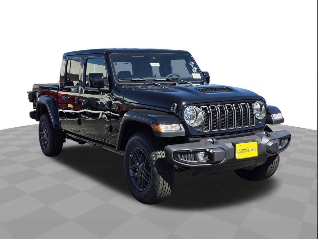 This 2025 Jeep Gladiator Sport S in Black Clearcoat includes the following features: 3.6L V6 24V VVT 8-Speed Automatic 4WD Dark Sky Appearance Package (Body Color Fender Flares (2-Piece), Daytime Running Lamp System, Mold In Color Bumper w/Gloss Black, and Performance Hood), Quick Order Package 24S Sport S (Advanced Brake Assist, Automatic Headlamps, Deep Tint Sunscreen Windows, Enhanced Adaptive Cruise Control, Full Speed Forward Collision Warning Plus, Normal Duty Plus Suspension, Power Heated Mirrors, Premium Wrapped Steering Wheel, Security Alarm, Sun Visors w/Illuminated Vanity Mirrors, and Wheels: 17" x 7.5" Gray), 110 MPH Vehicle Max Speed Calibration, 12.3" Touchscreen Display, 3.73 Rear Axle Ratio, 4-Wheel Disc Brakes, 4G LTE Wi-Fi Hot Spot, 8 Speakers, ABS brakes, Air Conditioning, Alexa Built-In, AM/FM radio: SiriusXM, Apple CarPlay, Apple CarPlay/Android Auto, Body Color 3-Piece Hard Top, Brake assist, Cloth Low-Back Bucket Seats, Compass, Connectivity - US/Canada, Delay-off headlights, Driver door bin, Driver vanity mirror, Dual front impact airbags, Dual front side impact airbags, Electronic Stability Control, Freedom Panel Storage Bag, Front anti-roll bar, Front Bucket Seats, Front Center Armrest w/Storage, Front fog lights, Front License Plate Bracket, Front reading lights, Google Android Auto, Illuminated entry, Integrated roll-over protection, Low tire pressure warning, Manufacturer's Statement of Origin, MOPAR All-Weather Slush Mats, Normal Duty Suspension, Occupant sensing airbag, Outside temperature display, Overhead airbag, Panic alarm, ParkView Rear Back-Up Camera, Passenger door bin, Passenger vanity mirror, Power steering, Power windows, Radio data system, Radio: Uconnect 5 w/12.3" Display, Rear anti-roll bar, Rear reading lights, Rear Sliding Window, Rear Window Defroster, Remote keyless entry, Speed control, Split folding rear seat, Steering wheel mounted audio controls, Tachometer, Telescoping steering wheel, Tilt steering wheel, Traction control, Trip computer, USB Host Flip, Variably intermittent wipers, Voltmeter, and Wheels: 17" x 7.5" Black Steel Styled. Price does not include tax, title, and license: $2250 - 2025 National Retail Bonus Cash . Exp. 04/30/2026