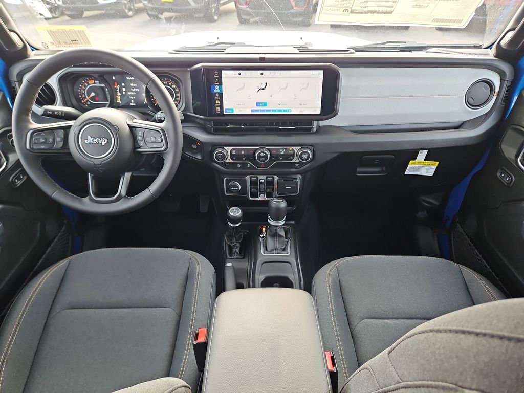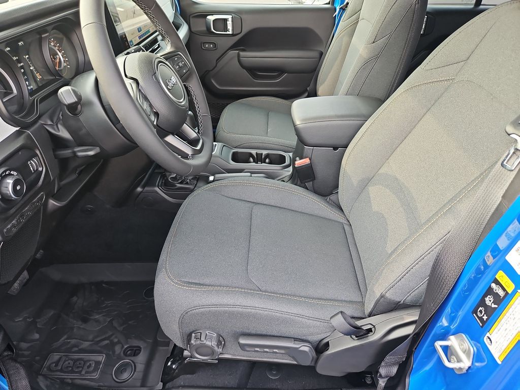 This 2025 Jeep Wrangler Sport S in Hydro Blue Pearl Coat includes the following features: 3.6L V6 24V VVT 8-Speed Automatic 4WD Convenience Group (2-Door Passive Entry, Front Door Locks, Air Conditioning w/Auto Temperature Control, Air Filtering, Cluster 7.0" TFT Color Display, Emergency/Assistance Call, Heated Front Seats, Heated Steering Wheel, Remote Start System, and Universal Garage Door Opener), Quick Order Package 24S Sport S (Advanced Brake Assist, Automatic Headlamps, Corning Gorilla Glass, Deep Tint Sunscreen Windows, Enhanced Adaptive Cruise Control, Full Speed Forward Collision Warning Plus, Power Heated Mirrors, Premium Wrapped Steering Wheel, Security Alarm, Sun Visors w/Illuminated Vanity Mirrors, and Wheels: 17" x 7.5" Gray), 110 MPH Vehicle Max Speed Calibration, 3.45 Overall Top Gear Ratio, 4-Wheel Disc Brakes, 8 Speakers, ABS brakes, Air Conditioning, AM/FM radio: SiriusXM, Apple CarPlay/Android Auto, Aux Battery, Black 3-Piece Hard Top, Brake assist, Cloth Low-Back Bucket Seats, Compass, Delay-off headlights, Driver door bin, Driver vanity mirror, Dual front impact airbags, Dual front side impact airbags, Electronic Stability Control, Freedom Panel Storage Bag, Front anti-roll bar, Front Bucket Seats, Front Center Armrest w/Storage, Front fog lights, Front reading lights, Illuminated entry, Integrated roll-over protection, Low tire pressure warning, MOPAR All-Weather Floor Mats, Non-Lock Fuel Cap w/o Discriminator, Normal Duty Suspension, Occupant sensing airbag, Outside temperature display, Overhead airbag, Panic alarm, ParkView Rear Back-Up Camera, Passenger door bin, Passenger vanity mirror, Power steering, Power windows, Radio data system, Radio: Uconnect 5 w/12.3" Display, Rear anti-roll bar, Rear reading lights, Rear Window Defroster, Rear Window Wiper/Washer, Remote keyless entry, Speed control, Split folding rear seat, Steering wheel mounted audio controls, Stop-Start Dual Battery System, Tachometer, Telescoping steering wheel, Tilt steering wheel, Traction control, Trip computer, Variably intermittent wipers, and Wheels: 17" x 7.5" Black Steel Styled.