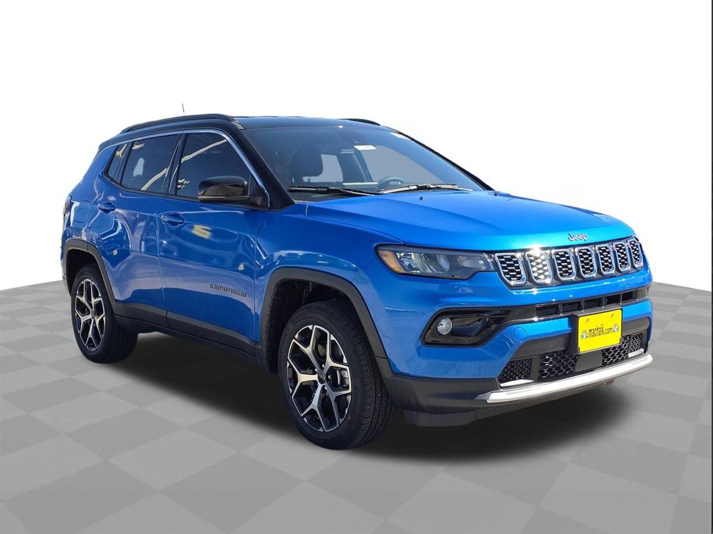 This 2026 Jeep Compass Limited in Hydro Blue Pearlcoat includes the following features: 2.0L I4 DOHC 8-Speed Automatic 4WD Quick Order Package 29G Limited, 4WD, 10.1" Touchscreen Display, 3.73 Final Drive Ratio, 4-Wheel Disc Brakes, 4G LTE Wi-Fi Hot Spot, 6 Speakers, ABS brakes, Air Conditioning, Alloy wheels, AM/FM radio: SiriusXM, Auto High-beam Headlights, Auto-dimming Rear-View mirror, Automatic temperature control, Brake assist, Bumpers: body-color, Compass, Delay-off headlights, Driver door bin, Driver vanity mirror, Dual front impact airbags, Dual front side impact airbags, Electronic Stability Control, Emergency communication system: SiriusXM Guardian, Four wheel independent suspension, Front anti-roll bar, Front Bucket Seats, Front Center Armrest w/Storage, Front dual zone A/C, Front fog lights, Front License Plate Bracket, Front reading lights, Fully automatic headlights, Global Telematics Box Module, Heated door mirrors, Heated front seats, Heated steering wheel, Illuminated entry, Knee airbag, Leather Shift Knob, Leather steering wheel, Leatherette Seats, Low tire pressure warning, Occupant sensing airbag, Outside temperature display, Overhead airbag, Overhead console, Panic alarm, ParkView Rear Back-Up Camera, Passenger door bin, Passenger vanity mirror, Power door mirrors, Power driver seat, Power Liftgate, Power steering, Power windows, Premium audio system: UConnect 5, Radio: Uconnect 5 with 10.1" Display, Rain sensing wipers, Rear anti-roll bar, Rear seat center armrest, Rear window defroster, Rear window wiper, Remote keyless entry, Security system, SiriusXM Guardian - Included Trail (B), SiriusXM Radio Service, Speed control, Split folding rear seat, Spoiler, Steering wheel mounted audio controls, Tachometer, Telescoping steering wheel, Tilt steering wheel, Traction control, Trip computer, Turn signal indicator mirrors, Variably intermittent wipers, and Wheels: 18" x 7" Painted Diamond Cut Aluminum. 23/31 City/Highway MPG Price does not include tax, title, and license: $1000 - 2026 National Retail Bonus Cash . Exp. 04/30/2026