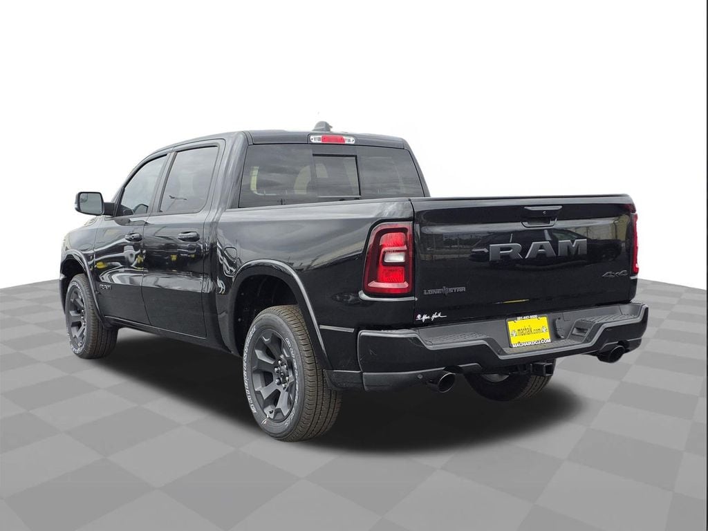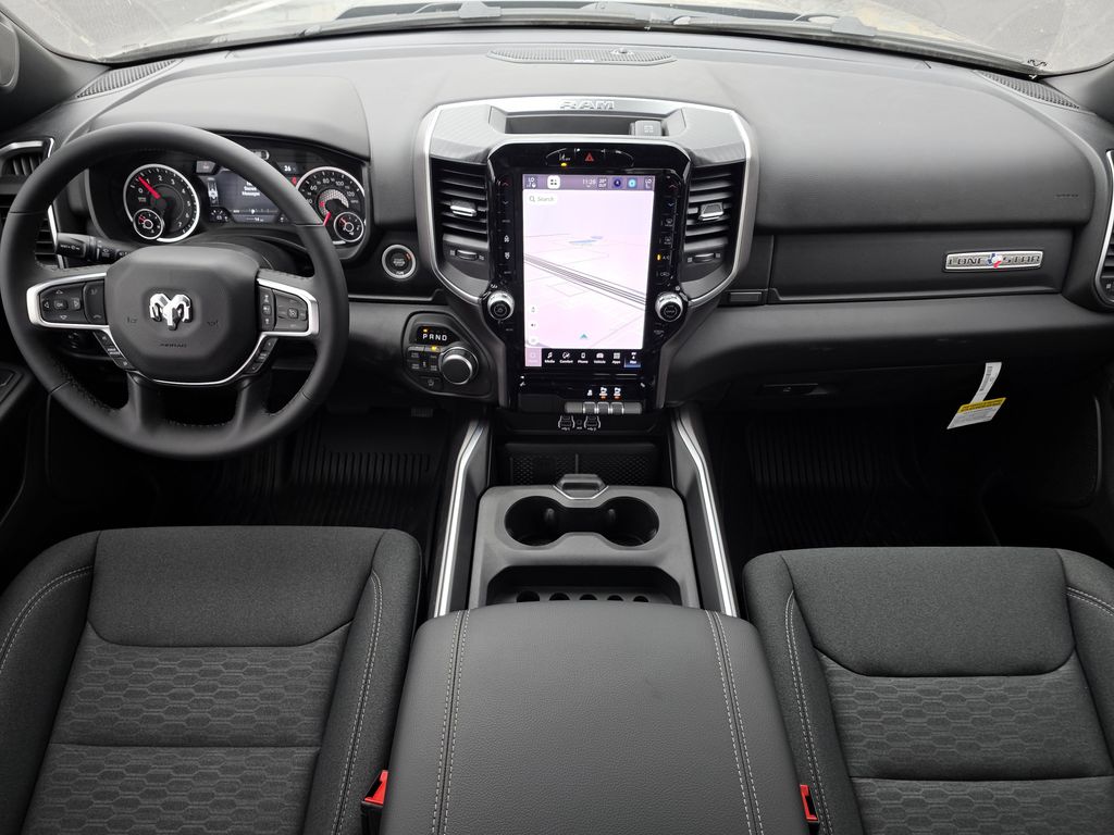 This 2026 Ram 1500 Big Horn/Lone Star in Diamond Black Crystal Pearlcoat includes the following features: 3.0L I6 8-Speed Automatic 4WD Big Horn Level 2 Equipment Group (115V Auxiliary Power Outlet, 115V Auxiliary Rear Power Outlet, 12" Touchscreen Display, 2nd Row in Floor Storage Bins, 3 Rear Seat Head Restraints, 4 Way Front Headrests, 400W Inverter, 4G LTE Wi-Fi Hot Spot, 9 Amplified Speakers with Subwoofer, Air Conditioning ATC with Dual Zone Control, Apple CarPlay, Auto Power-Folding Mirrors, Auto-Dimming Exterior Driver Mirror, Auto-Dimming Rear-View Mirror, Black Exterior Mirrors, Black Premium Power Mirrors, Body Color Fender Flares, Bucket Seats, Center Console Parts Module, Cluster 7.0" TFT Color Display, Configurable Drive Mode, Connected Travel and Traffic Services, Connectivity - US/Canada, Convex Wide-Angle Exterior Mirror Insert, Deluxe Cloth Bucket Seats, Disassociated Touchscreen Display, Exterior Mirrors Courtesy Lamps, Exterior Mirrors with Heating Element, Exterior Mirrors with Supplemental Signals, Front Seat Back Map Pockets, Full Length Floor Console, Global Telematics Box Module, Glove Box Lamp, Google Android Auto, GPS Antenna Input, GPS Navigation, HD Radio, Heated Front Seats, Heated Steering Wheel, Integrated Center Stack Radio, Integrated Voice Command with Bluetooth, Leather Wrapped Steering Wheel, LED Dome Lamp with on/Off Switch, LED Footwell Lighting, Manual Adjust 4-Way Front Passenger Seat, Media Hub with 2 Charge Only USBs, Overhead LED Lamps, Power 2-Way Driver Lumbar Adjust, Power Adjust 8-Way Driver Seat, Power Adjustable Pedals, Premium Overhead Console, Radio: Uconnect 5 Navigation with 12.0" Display, Rear 60/40 Folding Seat, Rear Center Armrest, Rear Power Sliding Window, Rear Window Defroster, Remote Tailgate Release, Security Alarm, SiriusXM Radio Service, SiriusXM with 360L, Steering Wheel Mounted Audio Controls, Sun Visors with Illuminated Vanity Mirrors, Universal Garage Door Opener, and USB Host Flip), Night Edition (Accent Color Door Handles, Accent Color Premium Power Mirrors, Accent Color Tailgate Handle, Anti-Spin Differential Rear Axle, Black Exterior Truck Badging, Black Headlamp Bezels, Black Interior Accents, Black Painted Exterior Mirrors Caps, Black Tail Lamp Bezels, Body Color Front Bumper, Body Color Rear Bumper with Step Pads, Dual Exhaust with Black Tips, Grille Black Surround Black Mesh, RAM Grille Badge - Black, and Wheels: 20" x 9.0" Aluminum Painted Clad), Quick Order Package 21R Lone Star (Lone Star Badge), 33 Gallon Fuel Tank, 4-Wheel Disc Brakes, 48V Belt Starter Generator, 6 Speakers, ABS brakes, Air Conditioning, Alloy wheels, AM/FM radio, Apple CarPlay/Android Auto, Auto High-beam Headlights, Brake assist, Bumpers: chrome, Cloth Bucket Seats, Compass, Delay-off headlights, Dome Dual LED Reading Lamp, Driver door bin, Dual front impact airbags, Dual front side impact airbags, Dual-Pane Panoramic Sunroof, Electronic Stability Control, Front anti-roll bar, Front Bucket Seats, Front Center Armrest w/Storage, Front fog lights, Front License Plate Bracket, Front reading lights, Front wheel independent suspension, Fully automatic headlights, Heated door mirrors, Illuminated entry, Low tire pressure warning, Manual Adjust 4-Way Driver Seat, Manual Folding Exterior Mirrors, Manufacturer's Statement of Origin, MOPAR Front and Rear Rubber Floor Mats, Occupant sensing airbag, Outside temperature display, Overhead airbag, Overhead console, Panic alarm, ParkView Rear Back-Up Camera, Passenger door bin, Passenger vanity mirror, Power door mirrors, Power steering, Power windows, Radio data system, Radio: Uconnect 5 W with 8.4" Displ Price does not include tax, title, and license: $1000 - 2026 Southwest BC State of Texas Regional Bonus Cash . Exp. 04/30/2026 $3500 - 2026 National Retail Bonus Cash . Exp. 04/30/2026 $750 - 2026 Southwest BC Retail Bonus Cash . Exp. 04/30/2