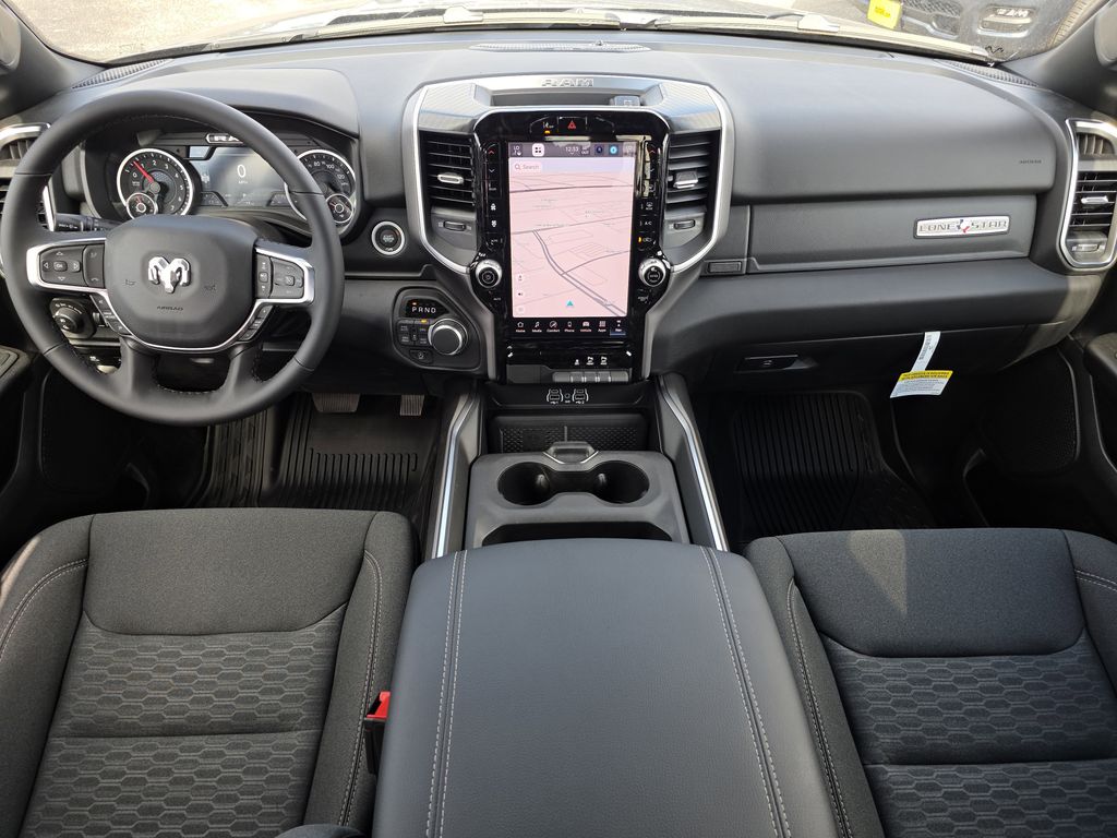 This 2026 Ram 1500 Big Horn/Lone Star in Granite Crystal Metallic Clearcoat includes the following features: 3.0L I6 8-Speed Automatic 4WD Big Horn Level 2 Equipment Group (115V Auxiliary Power Outlet, 115V Auxiliary Rear Power Outlet, 12" Touchscreen Display, 2nd Row in Floor Storage Bins, 3 Rear Seat Head Restraints, 4 Way Front Headrests, 400W Inverter, 4G LTE Wi-Fi Hot Spot, 9 Amplified Speakers with Subwoofer, Air Conditioning ATC with Dual Zone Control, Apple CarPlay, Auto Power-Folding Mirrors, Auto-Dimming Exterior Driver Mirror, Auto-Dimming Rear-View Mirror, Black Exterior Mirrors, Black Premium Power Mirrors, Body Color Fender Flares, Bucket Seats, Center Console Parts Module, Cluster 7.0" TFT Color Display, Configurable Drive Mode, Connected Travel and Traffic Services, Connectivity - US/Canada, Convex Wide-Angle Exterior Mirror Insert, Deluxe Cloth Bucket Seats, Disassociated Touchscreen Display, Exterior Mirrors Courtesy Lamps, Exterior Mirrors with Heating Element, Exterior Mirrors with Supplemental Signals, Front Seat Back Map Pockets, Full Length Floor Console, Global Telematics Box Module, Glove Box Lamp, Google Android Auto, GPS Antenna Input, GPS Navigation, HD Radio, Heated Front Seats, Heated Steering Wheel, Integrated Center Stack Radio, Integrated Voice Command with Bluetooth, Leather Wrapped Steering Wheel, LED Dome Lamp with on/Off Switch, LED Footwell Lighting, Manual Adjust 4-Way Front Passenger Seat, Media Hub with 2 Charge Only USBs, Overhead LED Lamps, Power 2-Way Driver Lumbar Adjust, Power Adjust 8-Way Driver Seat, Power Adjustable Pedals, Premium Overhead Console, Radio: Uconnect 5 Navigation with 12.0" Display, Rear 60/40 Folding Seat, Rear Center Armrest, Rear Power Sliding Window, Rear Window Defroster, Remote Tailgate Release, Security Alarm, SiriusXM Radio Service, SiriusXM with 360L, Steering Wheel Mounted Audio Controls, Sun Visors with Illuminated Vanity Mirrors, Universal Garage Door Opener, and USB Host Flip), Night Edition (Accent Color Door Handles, Accent Color Premium Power Mirrors, Accent Color Tailgate Handle, Anti-Spin Differential Rear Axle, Black Exterior Truck Badging, Black Headlamp Bezels, Black Interior Accents, Black Painted Exterior Mirrors Caps, Black Tail Lamp Bezels, Body Color Front Bumper, Body Color Rear Bumper with Step Pads, Dual Exhaust with Black Tips, Grille Black Surround Black Mesh, RAM Grille Badge - Black, and Wheels: 20" x 9.0" Aluminum Painted Clad), Quick Order Package 21R Lone Star (Lone Star Badge), 33 Gallon Fuel Tank, 4-Wheel Disc Brakes, 48V Belt Starter Generator, 6 Speakers, ABS brakes, Air Conditioning, Alloy wheels, AM/FM radio, Apple CarPlay/Android Auto, Auto High-beam Headlights, Brake assist, Bumpers: chrome, Cloth Bucket Seats, Compass, Delay-off headlights, Dome Dual LED Reading Lamp, Driver door bin, Dual front impact airbags, Dual front side impact airbags, Dual-Pane Panoramic Sunroof, Electronic Stability Control, Front anti-roll bar, Front Bucket Seats, Front Center Armrest w/Storage, Front fog lights, Front License Plate Bracket, Front reading lights, Front wheel independent suspension, Fully automatic headlights, Heated door mirrors, Illuminated entry, Low tire pressure warning, Manual Adjust 4-Way Driver Seat, Manual Folding Exterior Mirrors, Manufacturer's Statement of Origin, MOPAR Front and Rear Rubber Floor Mats, Occupant sensing airbag, Outside temperature display, Overhead airbag, Overhead console, Panic alarm, ParkView Rear Back-Up Camera, Passenger door bin, Passenger vanity mirror, Power door mirrors, Power steering, Power windows, Radio data system, Radio: Uconnect 5 W with 8.4" Price does not include tax, title, and license: $1000 - 2026 Southwest BC State of Texas Regional Bonus Cash . Exp. 04/30/2026 $3500 - 2026 National Retail Bonus Cash . Exp. 04/30/2026 $750 - 2026 Southwest BC Retail Bonus Cash . Exp. 04/30/2