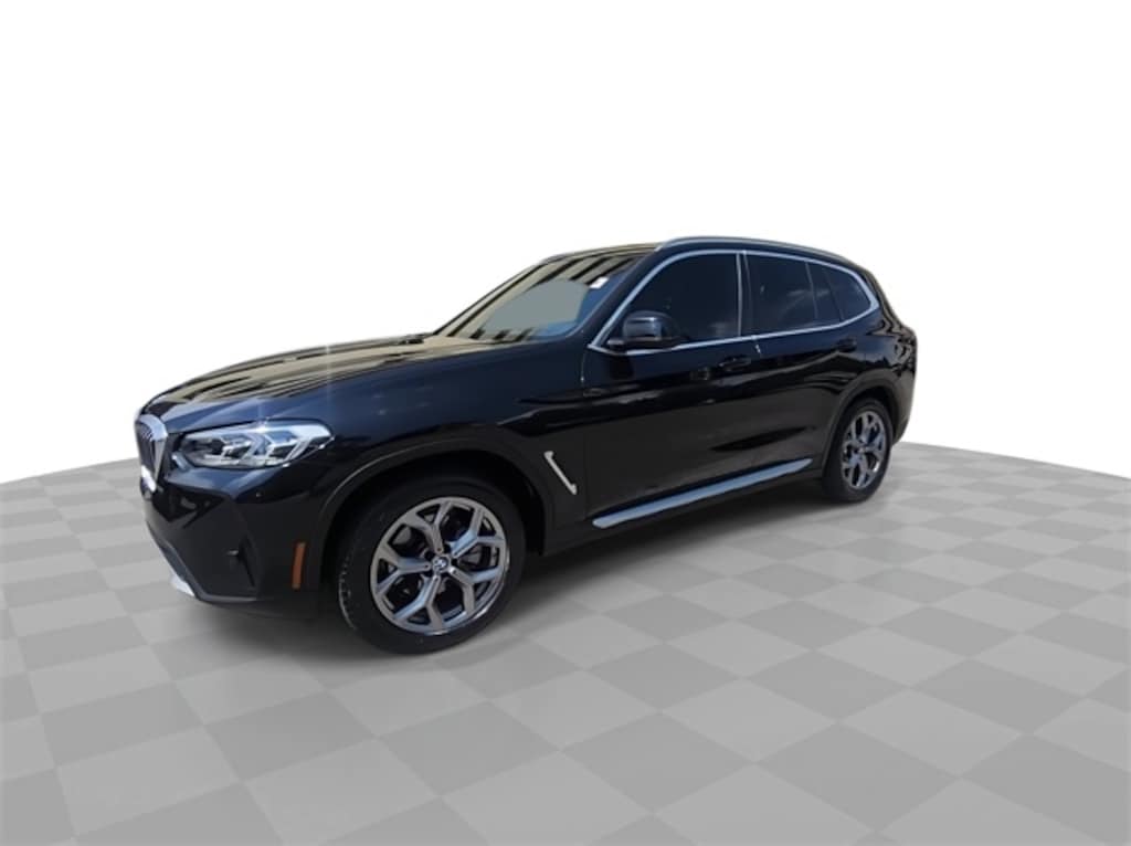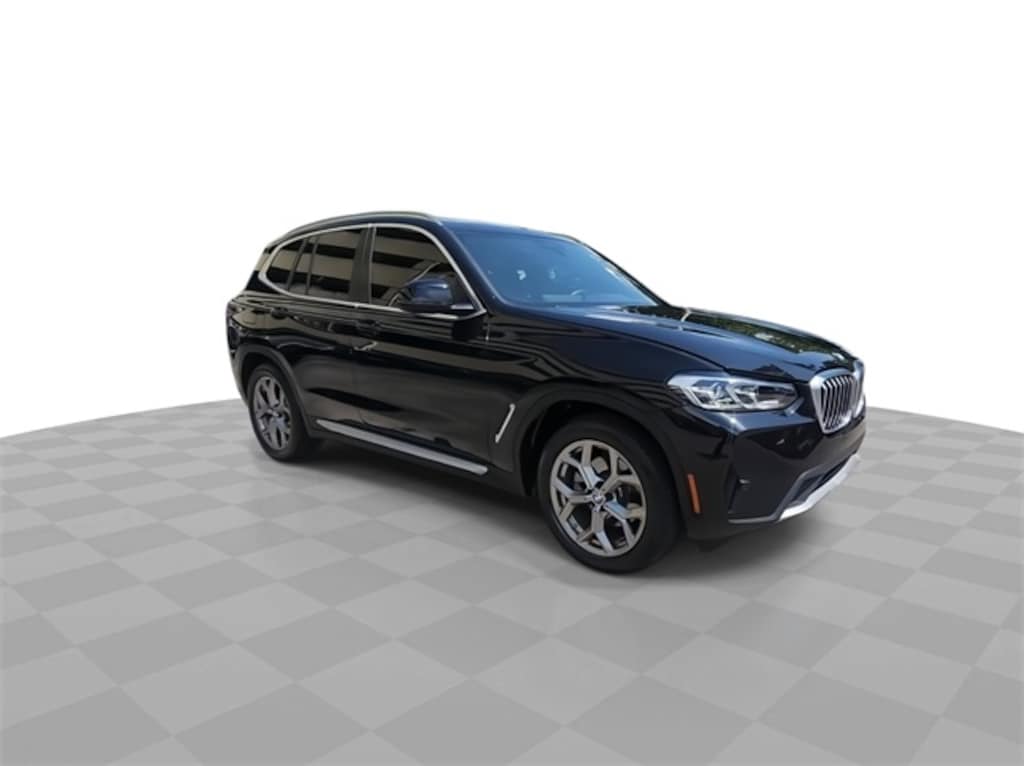 This 2022 BMW X3 sDrive30i in Black Sapphire Metallic includes the following features: 2.0L I4 TwinPower Turbo 8-Speed Automatic Sport RWD Premium Package 2 (Gesture Control, Heated Front Seats, Heated Steering Wheel, Lumbar Support, and Panoramic Moonroof), Connected Package Pro, X3 sDrive30i, 4D Sport Utility, 2.0L I4 TwinPower Turbo, 8-Speed Automatic Sport, RWD, Black Sapphire Metallic, Black w/Vernasca Leather Upholstery, 12 Speakers, 3.385 Axle Ratio, 4-Wheel Disc Brakes, ABS brakes, Air Conditioning, Alloy wheels, AM/FM Radio, AM/FM radio: SiriusXM with 360L, Apple CarPlay & Android Auto Compatibility, Auto High-beam Headlights, Auto-dimming door mirrors, Auto-dimming Rear-View mirror, Automatic temperature control, BMW Assist eCall, BMW TeleServices, Brake assist, Bumpers: body-color, Comfort Access Keyless Entry, ConnectedDrive Services, Delay-off headlights, Driver door bin, Driver vanity mirror, Dual front impact airbags, Dual front side impact airbags, Electronic Stability Control, Emergency communication system: BMW Assist eCall, Enhanced Bluetooth, Exterior Parking Camera Rear, Four wheel independent suspension, Front anti-roll bar, Front Bucket Seats, Front Center Armrest, Front dual zone A/C, Front reading lights, Fully automatic headlights, Garage door transmitter, Genuine wood dashboard insert, Genuine wood door panel insert, Heated door mirrors, Hi-Fi Sound System, Illuminated entry, Knee airbag, Live Cockpit Pro w/Navigation, Low tire pressure warning, Memory seat, Navigation, Navigation System, Occupant sensing airbag, Outside temperature display, Overhead airbag, Panic alarm, Passenger door bin, Passenger vanity mirror, Perforated SensaTec Upholstery, Power door mirrors, Power driver seat, Power Front Seats, Power Liftgate, Power passenger seat, Power steering, Power windows, Radio data system, Rain sensing wipers, Rear air conditioning, Rear anti-roll bar, Rear reading lights, Rear seat center armrest, Rear window defroster, Rear window wiper, Remote keyless entry, Roof rack: rails only, Security system, SiriusXM w/360L, Speed control, Speed-sensing steering, Speed-Sensitive Wipers, Split folding rear seat, Spoiler, Sport Seats, Sport steering wheel, Steering wheel mounted audio controls, Tachometer, Telescoping steering wheel, Tilt steering wheel, Traction control, Trip computer, Turn signal indicator mirrors, Variably intermittent wipers, Wheels: 19" x 7.5" Y-Spoke (Style 693), and WiFi Hotspot. 23/29 City/Highway MPG