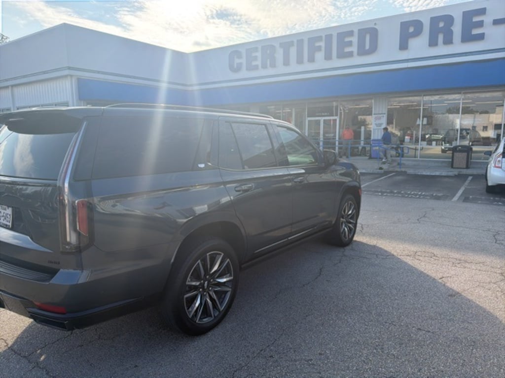 This 2021 Cadillac Escalade Sport in Shadow Metallic includes the following features: 6.2L V8 10-Speed Automatic with Overdrive RWD Driver Assist Tech Package (Adaptive Cruise Control, Air Ride Adaptive Suspension, Automatic Seat Belt Tightening, Enhanced Automatic Emergency Braking, Illuminating Front & Rear Sill Plates, Reverse Automatic Braking, and Soft Closing Front & Rear Doors), Preferred Equipment Group 1SC (Air Ionizer, AKG Studio 19-Speaker Audio System, Automatic Emergency Braking, Body-Color Door Handles, Door Lock & Latch Shields, Electronic Cruise Control w/Set & Resume Speed, Electronic Limited-Slip Differential, Enhanced Automatic Parking Assist, Glass Breakage Sensor, Hitch Guidance w/Hitch View, In-Vehicle Trailering System App, Integrated Trailer Brake Controller, Lane Keep Assist w/Lane Departure Warning, Power Panoramic Tilt-Sliding Sunroof, Rear Camera Mirror, Rear Camera Mirror Washer, Rear Cross Traffic Alert, Reconfigurable Full-Color Head-Up Display, Running Board Assist Steps, Theft-Deterrent Alarm System, Trailer Side Blind Zone Alert, Vehicle Inclination Sensor, and Vehicle Interior Movement Sensor), Escalade Sport, 4D Sport Utility, 6.2L V8, 10-Speed Automatic with Overdrive, RWD, Shadow Metallic, Brandy With Very Dark Atmosphere Accents Leather, 16.9" Diagonal OLED Infotainment Screen, 19 Speakers, 2-Presets Memory For Driver Seat Adjuster, 3.23 Axle Ratio, 3rd row seats: split-bench, 4-Way Power Driver Lumbar Seat Adjuster, 4-Way Power Front Passenger Lumbar Seat Adjuster, 4-Wheel Disc Brakes, 8-Way Power Driver Seat Adjuster, 8-Way Power Front Passenger Seat Adjuster, ABS brakes, Adaptive suspension, Air Conditioning, Alloy wheels, AM/FM radio: SiriusXM with 360L, Apple CarPlay/Android Auto, Audio memory, Auto High-beam Headlights, Auto tilt-away steering wheel, Auto-dimming door mirrors, Auto-dimming Rear-View mirror, Automatic temperature control, Brake assist, Bumpers: body-color, Compass, Delay-off headlights, Driver door bin, Driver vanity mirror, Dual front impact airbags, Dual front side impact airbags, Electronic Stability Control, Emergency communication system: OnStar and Cadillac connected services capable, Four wheel independent suspension, Front anti-roll bar, Front Bucket Seats, Front Center Armrest w/Storage, Front dual zone A/C, Front License Plate Bracket, Front reading lights, Fully automatic headlights, Garage door transmitter, Gloss Black Escalade Nameplate (LPO), HD Radio, Heads-Up Display, Heated & Ventilated Driver & Front Passenger Seats, Heated door mirrors, Heated Driver & Front Passenger Seats, Heated front seats, Heated rear seats, Heated steering wheel, Illuminated Cargo Sill Plate (LPO), Illuminated entry, Leather Seating Surfaces w/Precision Perf Inserts, Leather steering wheel, Low tire pressure warning, Magnetic Ride Control Suspension, Memory seat, Monochrome Cadillac Emblems (LPO), Navigation System, Occupant sensing airbag, Outside temperature display, Overhead airbag, Overhead console, Panic alarm, Passenger door bin, Passenger vanity mirror, Power door mirrors, Power driver seat, Power Liftgate, Power moonroof, Power passenger seat, Power steering, Power windows, Power-Retractable Assist Steps, Puddle Lamps w/Cadillac Crest (LPO), Radio data system, Radio: AM/FM/SiriusXM w/Navigation, Rain sensing wipers, Rear air condit
