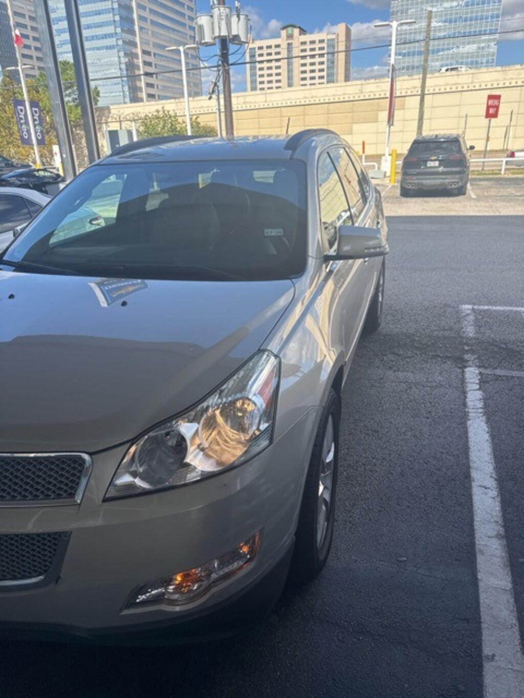 This 2011 Chevrolet Traverse LTZ in Gold Mist Metallic includes the following features: 3.6L V6 SIDI 6-Speed Automatic Electronic with Overdrive FWD Memory Package, Personal Connectivity Package (Bluetooth® For Phone, Leather-Wrapped Steering Wheel, Redundant Audio Controls on Steering Wheel, Remote Vehicle Start, and Universal Home Remote), Traverse LTZ, 4D Sport Utility, 3.6L V6 SIDI, 6-Speed Automatic Electronic with Overdrive, FWD, Gold Mist Metallic, 10 Speakers, 20" x 7.5" Aluminum Wheels, 3.16 Axle Ratio, 3rd row seats: split-bench, 4-Way Power Passenger Seat, 4-Wheel Disc Brakes, 7-Passenger Seating (2-2-3 Seating Configuration), 8-Way Power Driver Seat, ABS brakes, Air Conditioning, Alloy wheels, AM/FM radio: XM, AM/FM Stereo w/MP3 Compatible CD Player, Auto-Dimming Inside Rear-View Mirror, Auto-dimming Rear-View mirror, Automatic temperature control, Body-Color Heated Power-Adjustable Outside Mirrors, Body-Color Moldings w/Chrome Bodyside Accents, Bodyside moldings, Bose Premium 10-Speaker Sound System, Brake assist, Bumpers: body-color, CD player, Compass, Delay-off headlights, Digital Compass, Driver door bin, Driver vanity mirror, Dual Exhaust w/Bright Tips, Dual front impact airbags, Dual front side impact airbags, Electronic Stability Control, Emergency communication system: OnStar Directions & Connections, Enhanced Driver Information Center, Exterior Parking Camera Rear, Four wheel independent suspension, Front anti-roll bar, Front Bucket Seats, Front Center Armrest w/Storage, Front dual zone A/C, Front reading lights, Fully automatic headlights, Garage door transmitter, Heated & Cooled Driver & Front Passenger Seats, Heated door mirrors, Heated front seats, Illuminated entry, Integral Spotter Blind-Zone Mirrors, Interior Patterned Center Stack Trim, Leather Shift Knob, Low tire pressure warning, Memory seat, Occupant sensing airbag, Outside temperature display, Overhead airbag, Panic alarm, Passenger door bin, Passenger vanity mirror, Perforated Leather-Appointed Seat Trim, Power door mirrors, Power driver seat, Power Liftgate, Power passenger seat, Power steering, Power Windows, Power windows, Radio data system, Rear air conditioning, Rear anti-roll bar, Rear Power Liftgate, Rear reading lights, Rear window defroster, Rear window wiper, Reclining Front Bucket Seats, Remote keyless entry, Roof rack: rails only, Security system, Speed control, Speed-sensing steering, Spoiler, Steering wheel mounted audio controls, Tachometer, Telescoping steering wheel, Tilt steering wheel, Traction control, Tri-Zone Automatic Climate Control, Trip computer, Turn signal indicator mirrors, Ultrasonic Rear Parking Assist, Variable Effort Power Steering, Variably intermittent wipers, Ventilated front seats, Voltmeter, and XM Radio. Recent Arrival!