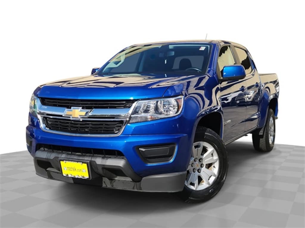 This 2019 Chevrolet Colorado LT in Kinetic Blue Metallic includes the following features: V6 8-Speed Automatic RWD Heavy-Duty Trailering Package, Preferred Equipment Group 2LT, Colorado LT, 4D Crew Cab, V6, 8-Speed Automatic, RWD, Kinetic Blue Metallic, Black Cloth, 4-Wheel Disc Brakes, 6 Speakers, 6-Speaker Audio System Feature, ABS brakes, Air Conditioning, Alloy wheels, AM/FM radio: SiriusXM, Apple CarPlay, Automatic Locking Rear Differential, Bumpers: body-color, Cloth Seat Trim, Compass, Delay-off headlights, Driver 6-Way Power Seat Adjuster, Driver door bin, Driver vanity mirror, Dual front impact airbags, Dual front side impact airbags, Electronic Stability Control, Exterior Parking Camera Rear, Front anti-roll bar, Front Bucket Seats, Front Center Armrest, Front License Plate Kit, Front reading lights, Front wheel independent suspension, Fully automatic headlights, HD Radio, Illuminated entry, Low tire pressure warning, Occupant sensing airbag, Outside temperature display, Overhead airbag, Overhead console, Panic alarm, Passenger door bin, Passenger vanity mirror, Power door mirrors, Power driver seat, Power steering, Power windows, Premium audio system: Chevrolet Infotainment System, Radio data system, Radio: Chevrolet Infotainment 3 Plus System, Rear reading lights, Rear seat center armrest, Rear step bumper, Remote keyless entry, Security system, SiriusXM Radio, Speed control, Speed-sensing steering, Steering wheel mounted audio controls, Tachometer, Telescoping steering wheel, Tilt steering wheel, Tow/Haul Mode, Traction control, Trailering Assist Guideline Hitch Guidance, Trip computer, Variably intermittent wipers, and Wheels: 17" x 8" Blade Silver Metallic Cast Alloy. Recent Arrival!