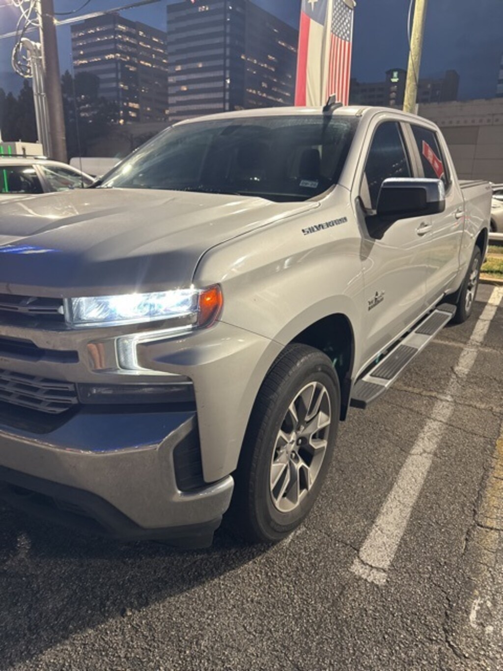 This 2019 Chevrolet Silverado 1500 LT in Silver Ice Metallic includes the following features: EcoTec3 5.3L V8 8-Speed Automatic 4WD Convenience Package (10-Way Power Driver Seat w/Lumbar, 12-Volt Rear Auxiliary Power Outlet, 40/20/40 Front Split-Bench Seat, Dual-Zone Automatic Climate Control, Electric Rear-Window Defogger, Electrical Lock Control Steering Column, EZ Lift Power Lock & Release Tailgate, Heated Driver & Front Passenger Seats, Heated Steering Wheel, Keyless Open & Start, Leather Wrapped Steering Wheel, LED Cargo Area Lighting, Manual Tilt/Telescoping Steering Column, Rear Dual USB Charging-Only Ports, Remote Vehicle Starter System, and Theft Deterrent System (Unauthorized Entry)), Preferred Equipment Group 1LT (2 USB Ports (First Row), 4-Way Manual Driver Seat Adjuster, 4.2" Diagonal Color Display Driver Info Center, Bluetooth® For Phone, Chevrolet Connected Access, Chevrolet w/4G LTE, Chrome Grille, Chrome Mirror Caps, Color-Keyed Carpeting Floor Covering, Compass, Deep-Tinted Glass, Electronic Cruise Control, Front Frame-Mounted Black Recovery Hooks, Front Rubberized Vinyl Floor Mats, Locking Tailgate, Manual Tilt Wheel Steering Column, OnStar & Chevrolet Connected Services Capable, Power Door Locks, Power Front Windows w/Driver Express Up/Down, Power Front Windows w/Passenger Express Down, Power Rear Windows w/Express Down, Rear 60/40 Folding Bench Seat (Folds Up), Rear Rubberized-Vinyl Floor Mats, Rear Vision Camera, Remote Keyless Entry, Single-Zone Manual/Semi-Automatic Air Conditioning, Steering Wheel Audio Controls, and Urethane Steering Wheel), Texas Edition (Heavy-Duty Rear Locking Differential and Texas Edition Badging), Trailering Package (Hitch Guidance), Silverado 1500 LT Texas Edition, 4D Crew Cab, EcoTec3 5.3L V8, 8-Speed Automatic, 4WD, Silver Ice Metallic, Black Cloth, 170 Amp Alternator, 220 Amps Alternator, 3.23 Rear Axle Ratio, 4-Wheel Disc Brakes, 40/20/40 Front Split Bench Seat, 6 Speakers, ABS brakes, Air Conditioning, All-Weather Floor Liner (LPO), Alloy wheels, AM/FM radio, Apple CarPlay/Android Auto, Auxiliary External Transmission Oil Cooler, Brake assist, Bumpers: chrome, Cloth Seat Trim, Delay-off headlights, Driver door bin, Driver vanity mirror, Dual front impact airbags, Dual front side impact airbags, Electronic Stability Control, External Engine Oil Cooler, Front anti-roll bar, Front Center Armrest w/Storage, Front License Plate Kit, Front reading lights, Front wheel independent suspension, Fully automatic headlights, Heated door mirrors, Heavy Duty Suspension, Illuminated entry, Integrated Trailer Brake Controller, Low tire pressure warning, Occupant sensing airbag, Outside temperature display, Overhead airbag, Overhead console, Panic alarm, Passenger door bin, Passenger vanity mirror, Power door mirrors, Power steering, Power windows, Premium audio system: Chevrolet Infotainment System 3, Radio data system, Radio: Chevrolet Infotainment 3 System, Rear reading lights, Rear step bumper, Remote keyless entry, Speed control, Speed-sensing steering, Split folding rear seat, Steering wheel mounted audio controls, Tachometer, Tilt steering wheel, Traction control, Trip computer, Variably intermittent wipers, Voltmeter, Wheels: 17" x 8" Bright Silver Painted Aluminum, and Wheels: 20" x 9" Painted Aluminum. Recent Arrival!