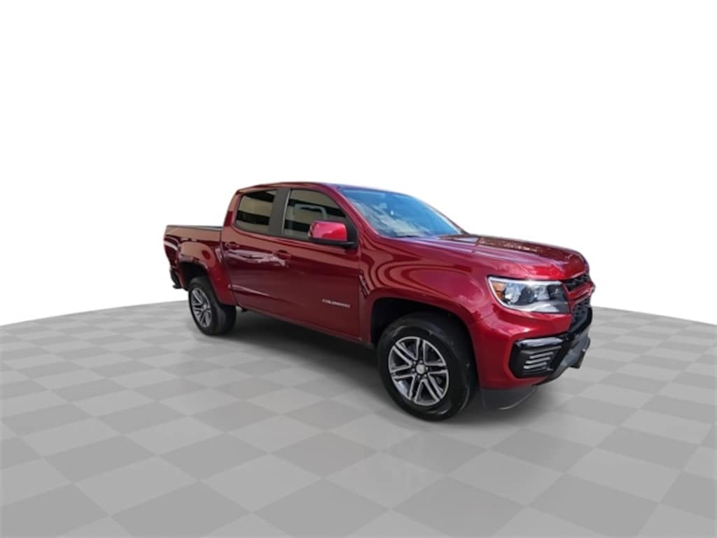 This 2021 Chevrolet Colorado Work Truck in Cherry Red Tintcoat includes the following features: 2.5L I4 DI DOHC VVT 6-Speed Automatic RWD Black Bowtie Emblem Package (LPO), Custom Special Edition (Body-Color Door Handles, Outside Power-Adjustable Body-Color Mirrors, Rear Body-Color Bumper, Spotter Mirror, and Wheels: 18" x 8.5" Dark Argent Metallic Cast Alloy), OnStar & Chevrolet Connected Services Capable (4G LTE Wi-Fi Hotspot Capable and Chevrolet Connected Access Capable), Preferred Equipment Group 2WT, WT Convenience Package (Electronic Automatic Cruise Control, Extended Range Remote Keyless Entry, EZ-Lift & Lower Tailgate, Remote Locking Tailgate, and Unauthorized Entry Theft-Deterrent System), Colorado Work Truck, 4D Crew Cab, 2.5L I4 DI DOHC VVT, 6-Speed Automatic, RWD, Cherry Red Tintcoat, Jet Black/Dark Ash Cloth, 4-Wheel Disc Brakes, 4.10 Rear Axle Ratio, 6 Speakers, 6-Speaker Audio System Feature, ABS brakes, Air Conditioning, AM/FM radio: SiriusXM, Apple CarPlay/Android Auto, Black Tailgate Lettering (LPO) (DISC), Bumpers: body-color, Delay-off headlights, Driver 4-Way Power Seat Adjuster, Driver door bin, Dual front impact airbags, Dual front side impact airbags, Electronic Stability Control, Exterior Parking Camera Rear, Front anti-roll bar, Front Bucket Seats, Front Center Armrest, Front License Plate Kit, Front wheel independent suspension, Fully automatic headlights, Low tire pressure warning, Occupant sensing airbag, Overhead airbag, Passenger door bin, Passenger vanity mirror, Power driver seat, Power steering, Power windows, Premium audio system: Chevrolet Infotainment 3, Radio data system, Radio: Chevrolet Infotainment 3 System, Rear seat center armrest, Rear step bumper, SiriusXM Radio, Speed-sensing steering, Tachometer, Tilt steering wheel, Traction control, Trip computer, UltraSonic Rear Park Assist, Variably intermittent wipers, Vinyl Seat Trim, and Wheels: 17" x 8" Ultra Silver Metallic Steel. Recent Arrival!