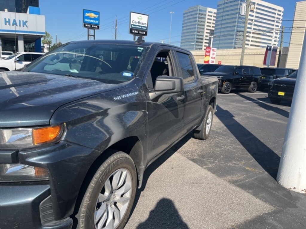 This 2021 Chevrolet Silverado 1500 Custom in Shadow Gray Metallic includes the following features: EcoTec3 4.3L V6 6-Speed Automatic Electronic with Overdrive RWD Custom Convenience Package (Electric Rear-Window Defogger, EZ Lift Power Lock & Release Tailgate, LED Cargo Area Lighting, Remote Vehicle Starter System, and Theft Deterrent System (Unauthorized Entry)), Custom Value Package, Infotainment Package (4G LTE Wi-Fi Hot Spot Capable, Chevrolet Connected Access Capable, OnStar & Chevrolet Connected Services Capable, and SiriusXM Radio), Preferred Equipment Group 1CX (170 Amp Alternator, 3.5" Diagonal Monochromatic Display, Bluetooth® For Phone, Body Color Grille, Color-Keyed Carpeting Floor Covering, Compass, Deep-Tinted Glass, Electronic Cruise Control, Front Frame-Mounted Black Recovery Hooks, Front Rubberized Vinyl Floor Mats, Manual Tilt Wheel Steering Column, Power Door Locks, Power Front Windows w/Driver Express Up/Down, Power Front Windows w/Passenger Express Down, Power Rear Windows w/Express Down, Rear 60/40 Folding Bench Seat (Folds Up), Rear Rubberized-Vinyl Floor Mats, Remote Keyless Entry, and Standard Tailgate), Trailering Package (Hitch Guidance), Silverado 1500 Custom, 4D Crew Cab, EcoTec3 4.3L V6, 6-Speed Automatic Electronic with Overdrive, RWD, Shadow Gray Metallic, Black Cloth, 3.42 Rear Axle Ratio, 4-Wheel Disc Brakes, 40/20/40 Front Split Bench Seat, 6 Speakers, ABS brakes, Air Conditioning, Alloy wheels, AM/FM radio: SiriusXM, Apple CarPlay/Android Auto, Auto-Locking Rear Differential, Brake assist, Bumpers: body-color, Cloth Seat Trim, Delay-off headlights, Driver door bin, Driver vanity mirror, Dual front impact airbags, Dual front side impact airbags, Electronic Stability Control, Front anti-roll bar, Front Center Armrest w/Storage, Front License Plate Kit, Front reading lights, Front wheel independent suspension, Fully automatic headlights, Heated door mirrors, Heavy Duty Suspension, Illuminated entry, Low tire pressure warning, Occupant sensing airbag, Outside temperature display, Overhead airbag, Overhead console, Panic alarm, Passenger door bin, Passenger vanity mirror, Polished Exhaust Tip, Power door mirrors, Power steering, Power windows, Premium audio system: Chevrolet Infotainment 3, Radio data system, Radio: Chevrolet Infotainment 3 System, Rear reading lights, Rear step bumper, Rear window defroster, Remote keyless entry, Security system, Speed control, Speed-sensing steering, Split folding rear seat, Tachometer, Tilt steering wheel, Traction control, Trip computer, Variably intermittent wipers, Voltmeter, Wheel Locks (Set of 4) (LPO), and Wheels: 20" x 9" Bright Silver Painted Aluminum. Recent Arrival!