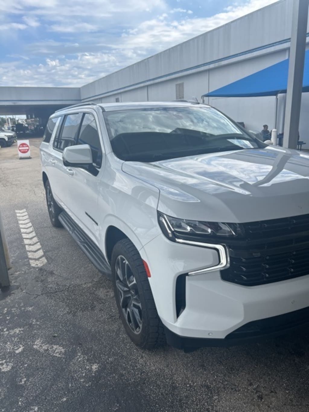 This 2021 Chevrolet Suburban RST in Summit White includes the following features: EcoTec3 5.3L V8 10-Speed Automatic with Overdrive RWD Driver Alert Package (Front & Rear Park Assist, Lane Change Alert w/Side Blind Zone Alert, Lane Keep Assist w/Lane Departure Warning, and Rear Cross Traffic Alert), License Plate Front Mounting Package, Luxury Package (2nd Row Pwr Release 60/40 Split-Folding Bench Seat, 3rd Row 60/40 Power-Folding Split-Bench, Automatic Heated Steering Wheel, HD Surround Vision, Heated 2nd Row Outboard Seats, Memory Settings, Outside Heated Power-Adjustable Mirrors, Power Tilt & Telescopic Steering Column, and Rear Pedestrian Alert), Preferred Equipment Group 1SP (10-Way Power Driver & Passenger Seat Adjusters, 1st & 2nd Row Color-Keyed Carpeted Floor Mats, 2 USB Data Ports, Auto-Dimming Inside Rear-View Mirror, Bose 9-Speaker Stereo Audio System Feature, Bright Front & Rear Door Sill Plates, Color-Keyed Carpeting Floor Covering, Driver & Front Outboard Passenger Airbags, Floor Console w/Storage Area, Hands-Free Rear Power Programmable Liftgate, HD Radio, Heated Driver & Front Passenger Seats, Infotainment Display, Leather-Wrapped Steering Wheel, LED Daytime Running Lamps, Memory Settings For Driver, Remote Start, SiriusXM Radio w/360L, and Universal Home Remote), Rear Media & Nav Package (Radio: Chevrolet Infotainment 3 Premium System and Rear Seat Media System), Suburban RST, 4D Sport Utility, EcoTec3 5.3L V8, 10-Speed Automatic with Overdrive, RWD, Summit White, Jet Black/Victory Red Leather, 3.23 Rear Axle Ratio, 3rd row seats: split-bench, 4-Wheel Disc Brakes, 9 Speakers, ABS brakes, Air Conditioning, Alloy wheels, AM/FM radio: SiriusXM with 360L, Apple CarPlay/Android Auto, Auto High-beam Headlights, Auto-dimming Rear-View mirror, Automatic temperature control, Brake assist, Bumpers: body-color, Compass, Delay-off headlights, Driver door bin, Driver vanity mirror, Dual front impact airbags, Dual front side impact airbags, Electronic Stability Control, Emergency communication system: OnStar and Chevrolet connected services capable, Four wheel independent suspension, Front anti-roll bar, Front Bucket Seats, Front Center Armrest, Front dual zone A/C, Front reading lights, Fully automatic headlights, Garage door transmitter, Heated door mirrors, Heated front seats, Illuminated entry, Leather steering wheel, Low tire pressure warning, Memory seat, Occupant sensing airbag, Outside temperature display, Overhead airbag, Overhead console, Panic alarm, Passenger door bin, Passenger vanity mirror, Perforated Leather Seating Surfaces, Power door mirrors, Power driver seat, Power Liftgate, Power passenger seat, Power steering, Power windows, Premium audio system: Chevrolet Infotainment 3 Plus, Premium Smooth Ride Suspension, Radio: Chevrolet Infotainment 3 Plus System, Rain sensing wipers, Rear air conditioning, Rear anti-roll bar, Rear reading lights, Rear seat center armrest, Rear window defroster, Rear window wiper, Remote keyless entry, Roof rack: rails only, Security system, Speed control, Speed-sensing steering, Split folding rear seat, Spoiler, Steering wheel mounted audio controls, Tachometer, Telescoping steering wheel, Tilt steering wheel, Traction control, Trip computer,