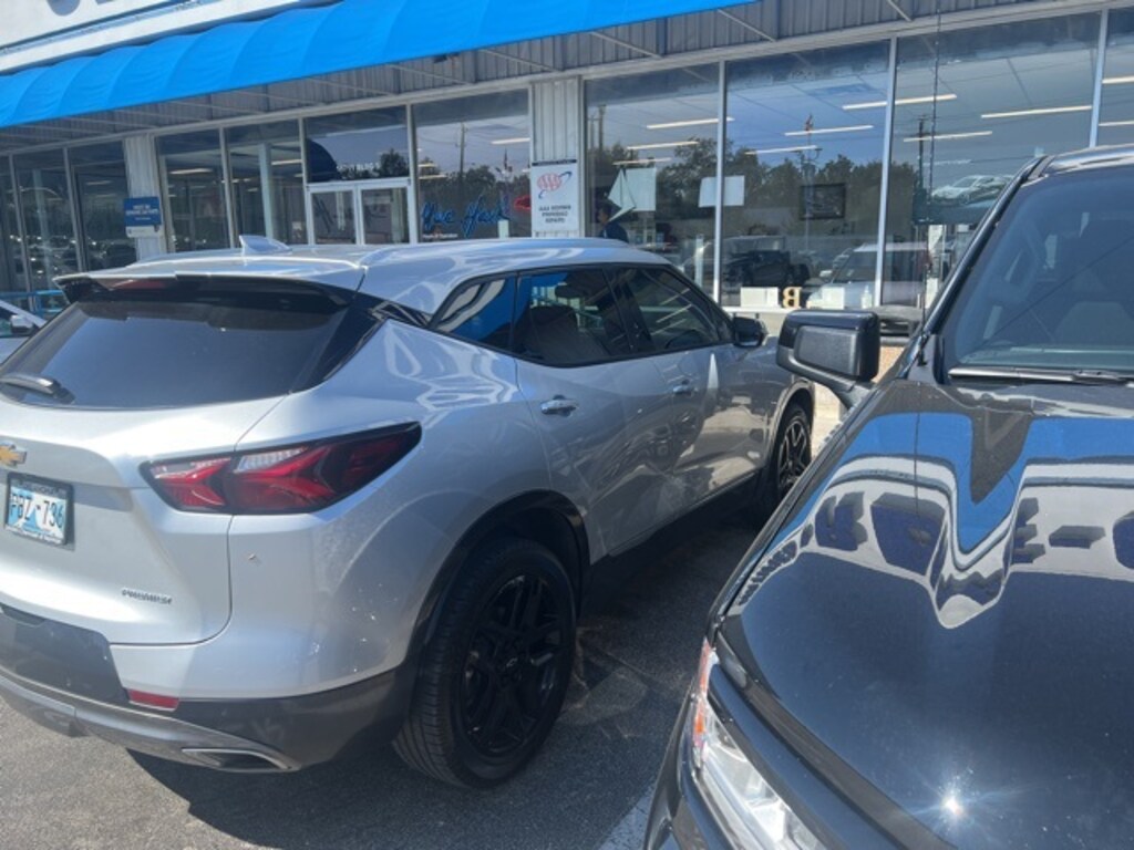 This 2022 Chevrolet Blazer Premier in Silver Ice Metallic includes the following features: 3.6L V6 SIDI 9-Speed Automatic with Overdrive FWD Preferred Equipment Group 0HD (Heated Driver & Front Passenger Seats and Heated Steering Wheel), Blazer Premier, 4D Sport Utility, 3.6L V6 SIDI, 9-Speed Automatic with Overdrive, FWD, Silver Ice Metallic, Jet Black Leather, 155 Amp Alternator, 170 Amp Alternator, 3.47 Final Drive Axle Ratio, 3.49 Final Drive Axle Ratio, 4-Wheel Disc Brakes, 6 Speakers, 6-Speaker Audio System Feature, 6-Way Power Front Passenger Seat Adjuster, ABS brakes, Air Conditioning, Alloy wheels, AM/FM radio: SiriusXM with 360L, Apple CarPlay/Android Auto, Auto High-beam Headlights, Auto-dimming door mirrors, Auto-dimming Rear-View mirror, Automatic temperature control, Brake assist, Bumpers: body-color, Child-Seat-Sensing Airbag, Compass, Delay-off headlights, Driver door bin, Driver vanity mirror, Dual front impact airbags, Dual front side impact airbags, Electronic Stability Control, Emergency communication system: OnStar and Chevrolet connected services capable, Exterior Parking Camera Rear, Four wheel independent suspension, Front anti-roll bar, Front Bucket Seats, Front Center Armrest, Front dual zone A/C, Front reading lights, Fully automatic headlights, Garage door transmitter, Heated door mirrors, Heated front seats, Heated steering wheel, High-Intensity Discharge Headlights, Illuminated entry, Knee airbag, Leather Shift Knob, Low tire pressure warning, Navigation System, Not Equipped w/Driver & Fr Passenger Heated Seats, Not Equipped w/Heated Steering Wheel, Not Equipped w/Rear Park Assist, Occupant sensing airbag, Outside temperature display, Overhead airbag, Overhead console, Panic alarm, Passenger door bin, Passenger vanity mirror, Perforated Leather-Appointed Seat Trim, Power door mirrors, Power driver seat, Power Liftgate, Power passenger seat, Power steering, Power windows, Radio data system, Radio: Chevrolet Infotainment 3 Plus System, Rear anti-roll bar, Rear reading lights, Rear seat center armrest, Rear window defroster, Rear window wiper, Remote keyless entry, Ride & Handling Suspension, Security system, SiriusXM w/360L, Speed control, Speed-sensing steering, Split folding rear seat, Spoiler, Steering wheel mounted audio controls, Tachometer, Telescoping steering wheel, Tilt steering wheel, Traction control, Trip computer, Turn signal indicator mirrors, Variably intermittent wipers, Voltmeter, Wheels: 20" Gloss Black Aluminum, and Wheels: 20" Medium Android Machined-Face Aluminum. Recent Arrival! 19/27 City/Highway MPG