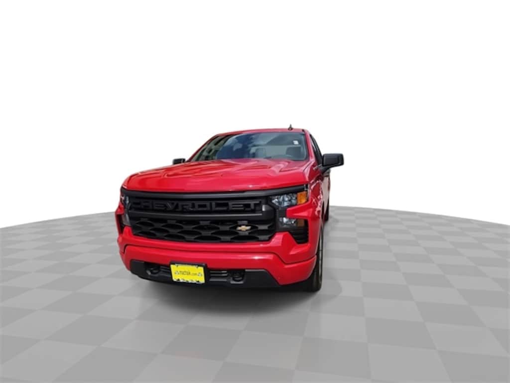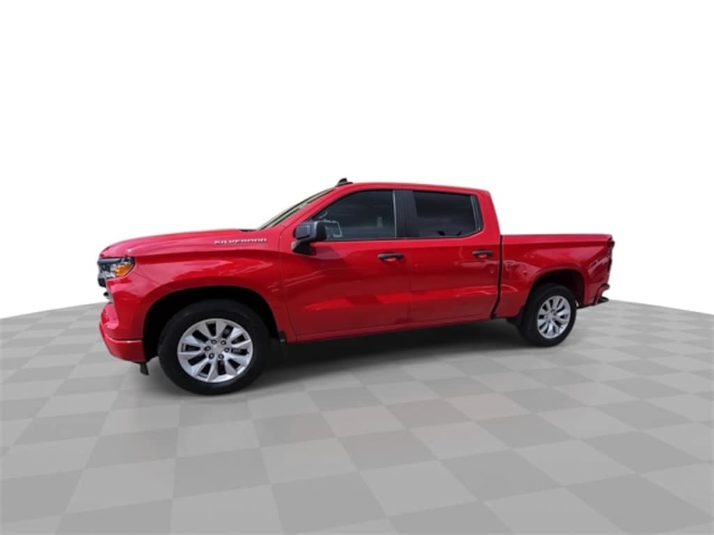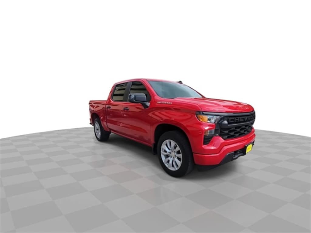 This 2022 Chevrolet Silverado 1500 Custom in Red Hot includes the following features: 2.7L Turbo 8-Speed Automatic RWD Custom Convenience Package (Electric Rear-Window Defogger, EZ Lift Power Lock & Release Tailgate, LED Cargo Area Lighting, and Remote Vehicle Starter System), Custom Value Package, High Capacity Suspension Package, Preferred Equipment Group 1CX (10-Way Power Driver Seat w/Lumbar, 120-Volt Bed Mounted Power Outlet, 120-Volt Instrument Panel Power Outlet, 3.5" Monochromatic Display Driver Info Center, Bluetooth® For Phone, Chevrolet Connected Access Capable, Color-Keyed Carpeting Floor Covering, Compass, Deep-Tinted Glass, Dual Rear USB Ports (Charge Only), Electrical Steering Column Lock, Electronic Cruise Control, Front Frame-Mounted Black Recovery Hooks, Front Rubberized Vinyl Floor Mats, HD Rear Vision Camera, Manual Tilt Wheel Steering Column, OnStar & Chevrolet Connected Services Capable, Power Front Windows w/Driver Express Up/Down, Power Front Windows w/Passenger Express Down, Power Rear Windows w/Express Down, Rear 60/40 Folding Bench Seat (Folds Up), Rear Rubberized-Vinyl Floor Mats, Remote Keyless Entry, SiriusXM Radio, Standard Tailgate, Theft Deterrent System (Unauthorized Entry), Wi-Fi Hot Spot Capable, and Wireless Phone Projection), Trailering Package (Hitch Guidance), Silverado 1500 Custom, 4D Crew Cab, 2.7L Turbo, 8-Speed Automatic, RWD, Red Hot, Jet Black w/Cloth Seat Trim, 3.42 Rear Axle Ratio, 4-Wheel Disc Brakes, 40/20/40 Front Split-Bench Seat, 6 Speakers, 6-Speaker Audio System, ABS brakes, Air Conditioning, Alloy wheels, AM/FM radio: SiriusXM, Apple CarPlay/Android Auto, Auto High-beam Headlights, Auto-Locking Rear Differential, Automatic Emergency Braking, Brake assist, Bumpers: body-color, Cloth Seat Trim, Delay-off headlights, Driver door bin, Driver vanity mirror, Dual front impact airbags, Dual front side impact airbags, Electronic Stability Control, Following Distance Indicator, Forward Collision Alert, Front anti-roll bar, Front Center Armrest w/Storage, Front License Plate Kit, Front Pedestrian Braking, Front reading lights, Front wheel independent suspension, Fully automatic headlights, Heated door mirrors, Illuminated entry, IntelliBeam Automatic High Beam On/Off, Lane Keep Assist w/Lane Departure Warning, Low tire pressure warning, Multi-Flex Tailgate, Occupant sensing airbag, Outside temperature display, Overhead airbag, Overhead console, Panic alarm, Passenger door bin, Passenger vanity mirror, Power door mirrors, Power driver seat, Power steering, Power windows, Premium audio system: Chevrolet Infotainment 3, Radio data system, Radio: Chevrolet Infotainment 3 System, Rear reading lights, Rear step bumper, Rear window defroster, Remote keyless entry, Security system, Speed control, Speed-sensing steering, Split folding rear seat, Tachometer, Tilt steering wheel, Traction control, Trip computer, Variably intermittent wipers, Voltmeter, Wheel Locks (Set of 4) (LPO), and Wheels: 20" x 9" Bright Silver Painted Aluminum.