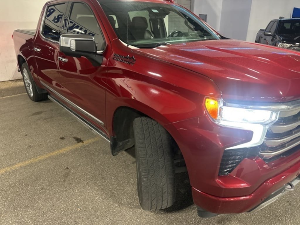 This 2022 Chevrolet Silverado 1500 High Country in Cherry Red Tintcoat includes the following features: EcoTec3 5.3L V8 10-Speed Automatic RWD Dark Essentials Package (LPO) (Black Name Plates (LPO)), High Capacity Suspension Package, High Country Premium Package (All-Weather Floor Liner (LPO), Power Sunroof, and Wheels: 22" x 9" Painted Aluminum), Preferred Equipment Group 3LZ (10-Way Power Driver Seat w/Lumbar, 10-Way Power Passenger Seat Adjuster w/Lumbar, 12.3" Multicolor Reconfigurable Digital Display, 120-Volt Bed Mounted Power Outlet, 120-Volt Instrument Panel Power Outlet, 2 USB Data Ports, 2nd Row Heated Outboard Seats, Auto-Dimming Inside Rear-View Mirror, Auto-Locking Rear Differential, Bed View Camera, Bluetooth® For Phone, Body-Color Painted Mirror Caps, Chevrolet Connected Access Capable, Chevytec Spray-On Black Bedliner, Chrome Assist Steps, Chrome Recovery Hooks, Color-Keyed Carpeting Floor Covering, Compass, Deep-Tinted Glass, Driver Memory, Dual Exhaust w/Polished Outlets, Dual Rear USB Ports (Charge Only), Electric Rear-Window Defogger, Electrical Steering Column Lock, Electronic Cruise Control, Floor Mounted Center Console, Front Carpeted Floor Mats, Front LED Fog Lamps, Front Rainsensing Wipers, HD Surround Vision, Heated Driver & Front Outboard Passenger Seats, Heated Steering Wheel, Hitch Guidance w/Hitch View, Integrated Trailer Brake Controller, Keyless Open & Start, Leather Wrapped Steering Wheel, LED Cargo Area Lighting, OnStar & Chevrolet Connected Services Capable, Outside Heated Power-Adjustable Mirrors, Perimeter Lighting, Power Front Passenger Windows w/Express Up/Down, Power Front Windows w/Driver Express Up/Down, Power Rear Windows w/Express Down, Power Sliding Rear Window w/Rear Defogger, Power Tailgate, Power Tilt & Telescoping Steering Column, Rear Carpeted Floor Mats, Rear Cross Traffic Alert-Braking, Rear Pedestrian Detection, Rear Wheelhouse Liners, Remote Vehicle Starter System, Safety Alert Seat, SiriusXM w/360L, Standard Tailgate, Steering Wheel Audio Controls, Theft Deterrent System (Unauthorized Entry), Trailer Camera Provisions, Trailer Side Blind Zone Alert, Trailering App, Ultrasonic Front & Rear Park Assist, Universal Home Remote, Ventilated Driver & Front Passenger Seats, Wi-Fi Hot Spot Capable, Wireless Charging, and Wireless Phone Projection), Technology Package (15" Diagonal Multicolor Head-Up Display, Adaptive Cruise Control, Enhanced Automatic Emergency Braking, and Rear Camera Mirror), Trailering Package (Hitch Guidance), Up-Level Rear Seat w/Storage Package, Silverado 1500 High Country, 4D Crew Cab, EcoTec3 5.3L V8, 10-Speed Automatic, RWD, Cherry Red Tintcoat, Jet Black Leather, 170 Amp Alternator, 3.23 Rear Axle Ratio, 4-Wheel Disc Brakes, 7 Speakers, ABS brakes, Adaptive Ride Control Suspension, Air Conditioning, Alloy wheels, AM/FM radio: SiriusXM with 360L, Apple CarPlay/Android Auto, Auto High-beam Headlights, Auto-dimming door mirrors, Auto-dimming Rear-View mirror, Automatic Emergency Braking, Automatic temperature control, Bodyside moldings, Brake assist, Bumpers: body-color, Delay-off headlights, Driver door bin, Driver vanity mirror, Dual front impact airbags, Dual front side impact airbags, Electronic Stability Control, Ele