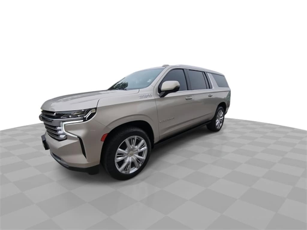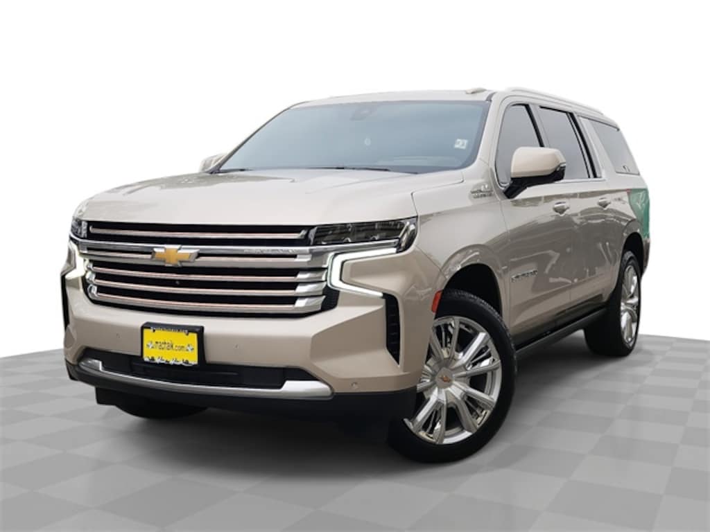 This 2022 Chevrolet Suburban High Country in Empire Beige Metallic includes the following features: EcoTec3 6.2L V8 10-Speed Automatic with Overdrive RWD License Plate Front Mounting Package, Preferred Equipment Group 3LZ (15" Diagonal Multi-Color Head-Up Display, 1st & 2nd Row Color-Keyed Carpeted Floor Mats, 3rd Row 60/40 Power-Folding Split-Bench, Automatic Stop/Start, Bose 10-Speaker Surround w/CenterPoint, Bright Front & Rear Door Sill Plates, Chrome Door Handles w/Body-Color Strip, Color-Keyed Carpeting Floor Covering, Driver & Front Outboard Passenger Airbags, Dual Exhaust System, Enhanced Driver Information Center, Floor Console, Front & Rear Park Assist, Hands-Free Rear Power Programmable Liftgate, HD Surround Vision, Heated & Ventilated Driver & Front Passenger Seats, Heated 2nd Row Outboard Seats, Heated Driver & Front Passenger Seats, Heated Steering Wheel, Infotainment Display, Inside Rearview Auto-Dimming Rear Camera Mirror, Lane Change Alert w/Side Blind Zone Alert, Leather-Wrapped Steering Wheel, LED Daytime Running Lamps, Memory Settings, Outside Heated Power-Adjustable Mirrors, Power Release 2nd Row Bucket Seats, Power Tilt & Telescopic Steering Column, Rear Camera Mirror Washer, Rear Cross Traffic Alert, Rear Pedestrian Alert, Remote Start, Safety Alert Seat, SiriusXM Radio w/360L, Start/Stop System Disable Button, Universal Home Remote, and Wireless Charging), Suburban High Country, 4D Sport Utility, EcoTec3 6.2L V8, 10-Speed Automatic with Overdrive, RWD, Empire Beige Metallic, Jet Black/Mocha Leather, 10 Speakers, 3.23 Rear Axle Ratio, 3rd row seats: split-bench, 4-Wheel Disc Brakes, ABS brakes, Adaptive suspension, Air Conditioning, Alloy wheels, AM/FM radio: SiriusXM with 360L, Apple CarPlay/Android Auto, Auto High-beam Headlights, Auto-dimming door mirrors, Auto-dimming Rear-View mirror, Auto-leveling suspension, Automatic temperature control, Brake assist, Bumpers: body-color, Compass, Delay-off headlights, Driver door bin, Driver vanity mirror, Dual front impact airbags, Dual front side impact airbags, Dual-Pane Power Panoramic Sunroof, Electronic Stability Control, Emergency communication system: OnStar and Chevrolet connected services capable, Four wheel independent suspension, Front anti-roll bar, Front Bucket Seats, Front Center Armrest, Front dual zone A/C, Front reading lights, Fully automatic headlights, Garage door transmitter, Heads-Up Display, Heated door mirrors, Heated front seats, Heated rear seats, Heated steering wheel, Illuminated entry, Leather steering wheel, Low tire pressure warning, Magnetic Ride Control Suspension, Memory seat, Navigation System, Not Equipped w/4-Way Driver & Fr Pass Pwr Lumbar, Not Equipped w/Steering Column Lock, Occupant sensing airbag, Outside temperature display, Overhead airbag, Overhead console, Panic alarm, Passenger door bin, Passenger vanity mirror, Perforated Leather Seating Surfaces, Power door mirrors, Power driver seat, Power Liftgate, Power passenger seat, Power steering, Power windows, Power-Retractable Assist Steps, Premium audio system: Chevrolet Infotainment 3 Premium, Radio: Chevrolet Infotainment 3 Premium System, Rain sensing wi