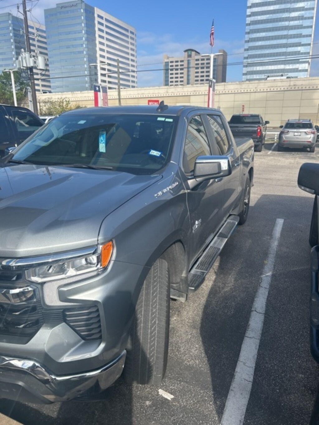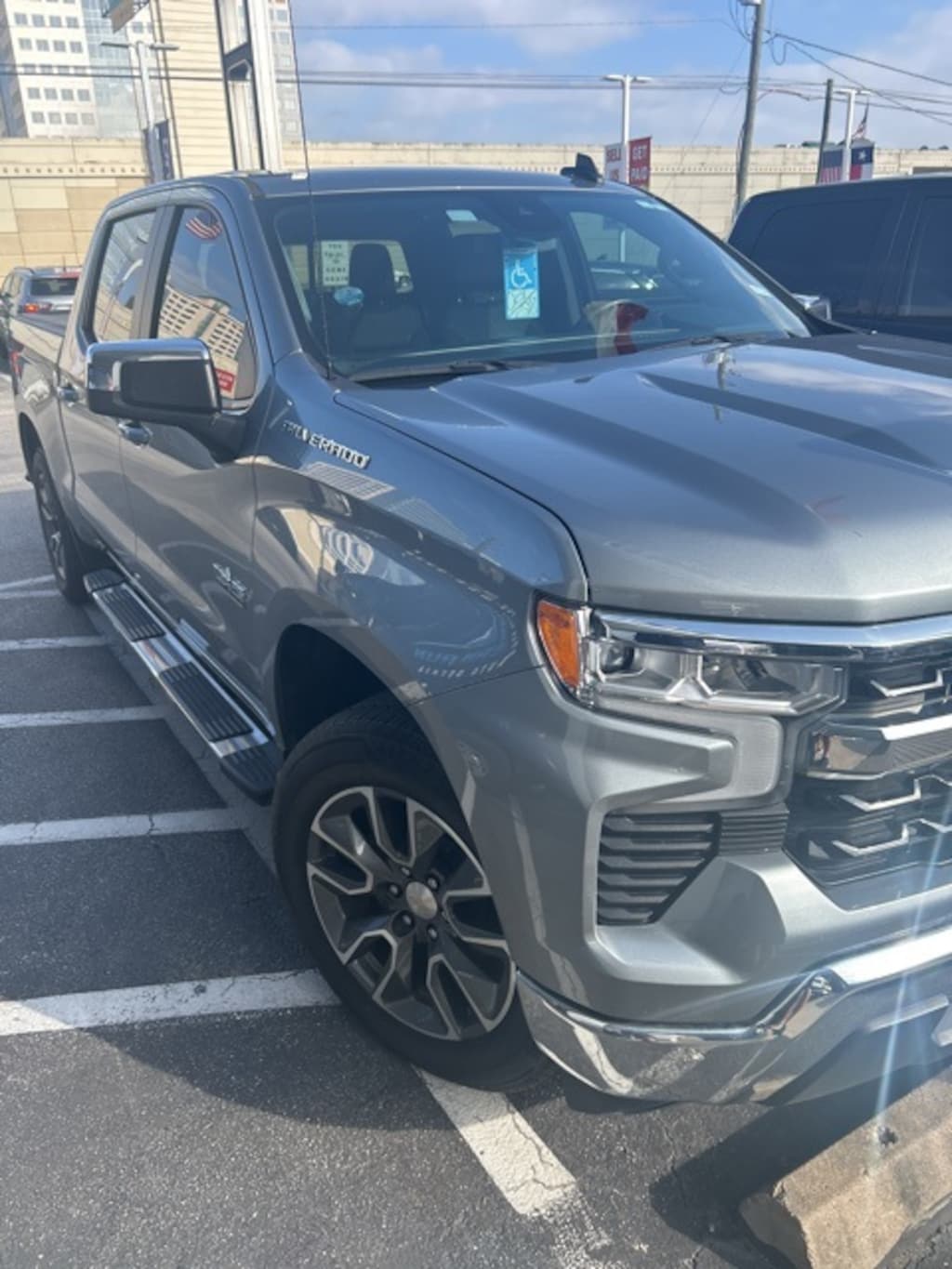 This 2023 Chevrolet Silverado 1500 LT in Sterling Gray Metallic includes the following features: EcoTec3 5.3L V8 10-Speed Automatic RWD Convenience Package (10-Way Power Driver Seat w/Lumbar, 120-Volt Bed Mounted Power Outlet, 120-Volt Instrument Panel Power Outlet, Dual Rear USB Ports (Charge Only), Dual-Zone Automatic Climate Control, Heated Driver & Front Outboard Passenger Seats, Heated Steering Wheel, Keyless Open & Start, and Wrapped Steering Wheel), Convenience Package II (Hitch Guidance w/Hitch View, Integrated Trailer Brake Controller, Power Sliding Rear Window w/Rear Defogger, Trailering App, and Universal Home Remote), High Capacity Suspension Package, Leather Package (Leather-Appointed Front Seat Trim), Preferred Equipment Group 1LT (12.3" Multicolor Reconfigurable Digital Display, All-Star Edition, Auto-Locking Rear Differential, Bluetooth® For Phone, Chevrolet Connected Access Capable, Chrome Mirror Caps, Color-Keyed Carpeting Floor Covering, Compass, Deep-Tinted Glass, Electrical Steering Column Lock, Electronic Cruise Control, EZ Lift Power Lock & Release Tailgate, Front Rubberized Vinyl Floor Mats, HD Rear Vision Camera, Heated Power-Adjustable Outside Mirrors, Inside Rear-View Mirror w/Tilt, LED Cargo Area Lighting, OnStar & Chevrolet Connected Services Capable, Power Front Windows w/Driver Express Up/Down, Power Front Windows w/Passenger Express Down, Power Rear Windows w/Express Down, Rear 60/40 Folding Bench Seat (Folds Up), Rear Rubberized-Vinyl Floor Mats, SiriusXM w/360L, Standard Tailgate, Steering Wheel Audio Controls, Wi-Fi Hot Spot Capable, and Wireless Phone Projection), Remote Start Package (Electric Rear-Window Defogger, Remote Vehicle Starter System, and Theft Deterrent System (Unauthorized Entry)), Standard Suspension Package, Texas Edition Plus (Texas Edition Badging and Wheels: 20" x 9" Painted Aluminum), Trailering Package (Hitch Guidance), Up-Level Rear Seat w/Storage Package, Silverado 1500 LT Texas Edition, 4D Crew Cab, EcoTec3 5.3L V8, 10-Speed Automatic, RWD, Sterling Gray Metallic, Black Leather, 170 Amp Alternator, 2 USB Data Ports, 220 Amp Alternator, 3.23 Rear Axle Ratio, 4-Wheel Disc Brakes, 40/20/40 Front Split-Bench Seat, 6 Speakers, 6-Speaker Audio System, ABS brakes, Air Conditioning, Alloy wheels, AM/FM radio: SiriusXM with 360L, Apple CarPlay/Android Auto, Auto High-beam Headlights, Automatic Emergency Braking, Automatic temperature control, Auxiliary External Transmission Oil Cooler, Brake assist, Bumpers: chrome, Cloth Seat Trim, Delay-off headlights, Driver door bin, Driver vanity mirror, Dual front impact airbags, Dual front side impact airbags, Electronic Stability Control, Electronic Transmission Range Selector Shifter, External Engine Oil Cooler, Floor Mounted Center Console, Following Distance Indicator, Forward Collision Alert, Front anti-roll bar, Front Bucket Seats, Front Center Armrest w/Storage, Front dual zone A/C, Front License Plate Kit, Front Pedestrian Braking, Front reading lights, Front wheel independent suspension, Fully automatic headlights, Heated door mirrors, Heated front seats, Heated steering wheel, Illuminated entry, IntelliBeam Automatic High Beam On/Off, Lane Keep Assist w/Lane Departure Warning, Low tire pressure warning, Not Eq