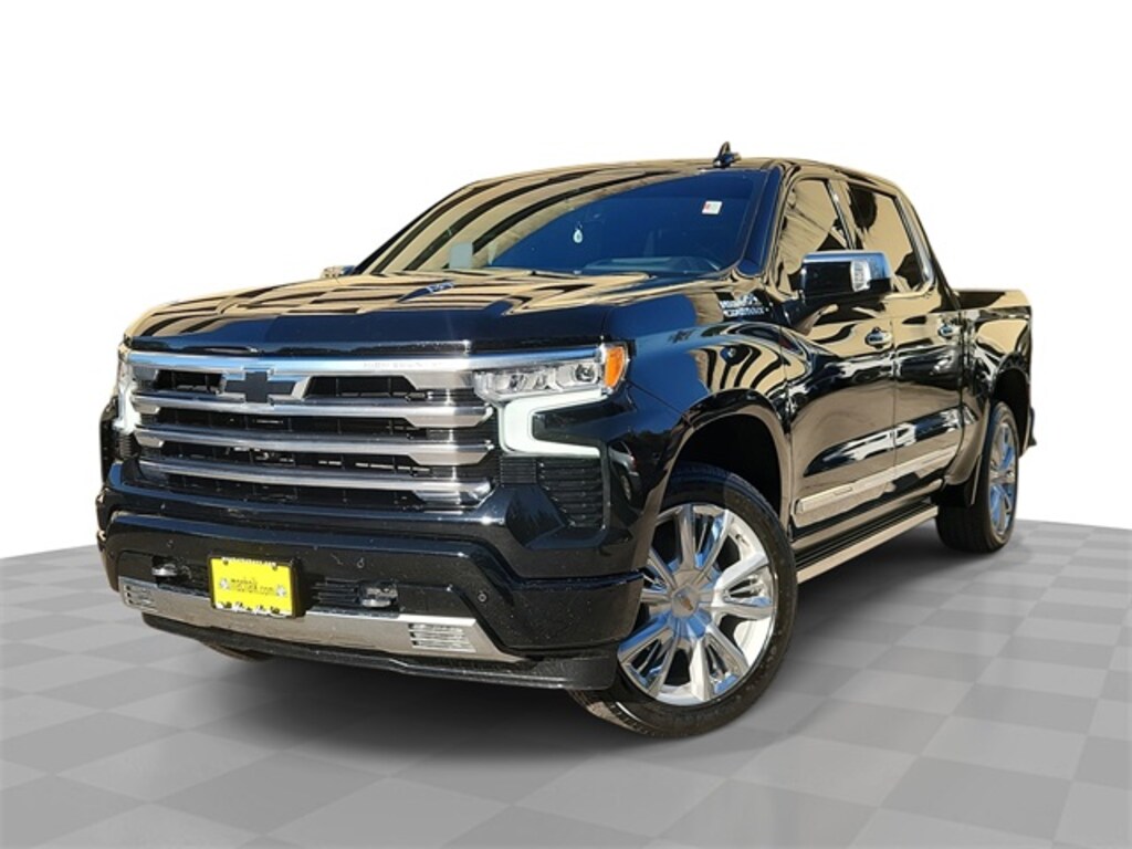 This 2023 Chevrolet Silverado 1500 High Country in Black includes the following features: EcoTec3 6.2L V8 10-Speed Automatic 4WD High Capacity Suspension Package, High Country Premium Package (All-Weather Floor Liner (LPO), Power Sunroof, and Wheels: 22" x 9" Painted Aluminum), Preferred Equipment Group 3LZ (10-Way Power Driver Seat w/Lumbar, 10-Way Power Passenger Seat Adjuster w/Lumbar, 12.3" Multicolor Reconfigurable Digital Display, 120-Volt Bed Mounted Power Outlet, 120-Volt Instrument Panel Power Outlet, 2 USB Data Ports, 2nd Row Heated Outboard Seats, Auto-Dimming Inside Rear-View Mirror, Auto-Locking Rear Differential, Bed View Camera, Bluetooth® For Phone, Body-Color Painted Mirror Caps, Chevrolet Connected Access Capable, Chevytec Spray-On Black Bedliner, Chrome Assist Steps, Chrome Recovery Hooks, Color-Keyed Carpeting Floor Covering, Compass, Deep-Tinted Glass, Driver Memory, Dual Exhaust w/Polished Outlets, Dual Rear USB Ports (Charge Only), Electric Rear-Window Defogger, Electrical Steering Column Lock, Electronic Cruise Control, Floor Mounted Center Console, Front Carpeted Floor Mats, Front LED Fog Lamps, Front Rainsensing Wipers, HD Surround Vision, Heated Driver & Front Outboard Passenger Seats, Heated Steering Wheel, Hitch Guidance w/Hitch View, Integrated Trailer Brake Controller, Keyless Open & Start, LED Cargo Area Lighting, OnStar & Chevrolet Connected Services Capable, Outside Heated Power-Adjustable Mirrors, Perimeter Lighting, Power Front Passenger Windows w/Express Up/Down, Power Front Windows w/Driver Express Up/Down, Power Rear Windows w/Express Down, Power Sliding Rear Window w/Rear Defogger, Power Tailgate, Power Tilt & Telescoping Steering Column, Rear Carpeted Floor Mats, Rear Cross Traffic Alert-Braking, Rear Pedestrian Alert, Rear Wheelhouse Liners, Remote Vehicle Starter System, Safety Alert Seat, SiriusXM w/360L, Standard Tailgate, Steering Wheel Audio Controls, Theft Deterrent System (Unauthorized Entry), Trailer Camera Provisions, Trailer Side Blind Zone Alert, Trailering App, Ultrasonic Front & Rear Park Assist, Universal Home Remote, Ventilated Driver & Front Passenger Seats, Wi-Fi Hot Spot Capable, Wireless Charging, Wireless Phone Projection, and Wrapped Steering Wheel), Technology Package (15" Diagonal Multicolor Head-Up Display, Adaptive Cruise Control, and Rear Camera Mirror), Trailering Package (Hitch Guidance), Up-Level Rear Seat w/Storage Package, Silverado 1500 High Country, 4D Crew Cab, EcoTec3 6.2L V8, 10-Speed Automatic, 4WD, Black, Jet Black/Umber Leather, 170 Amp Alternator, 3.23 Rear Axle Ratio, 4-Wheel Disc Brakes, 7 Speakers, ABS brakes, Adaptive Ride Control Suspension, Air Conditioning, Alloy wheels, AM/FM radio: SiriusXM with 360L, Apple CarPlay/Android Auto, Auto High-beam Headlights, Auto-dimming door mirrors, Auto-dimming Rear-View mirror, Automatic Emergency Braking, Automatic temperature control, Bodyside moldings, Brake assist, Bumpers: body-color, Delay-off headlights, Driver door bin, Driver vanity mirror, Dual front impact airbags, Dual front side impact airbags, Electronic Stability Control, Electronic Transmission Range Selector Shifter, EZ Lift Power Lock & Release Tailgate, Following Distance Ind