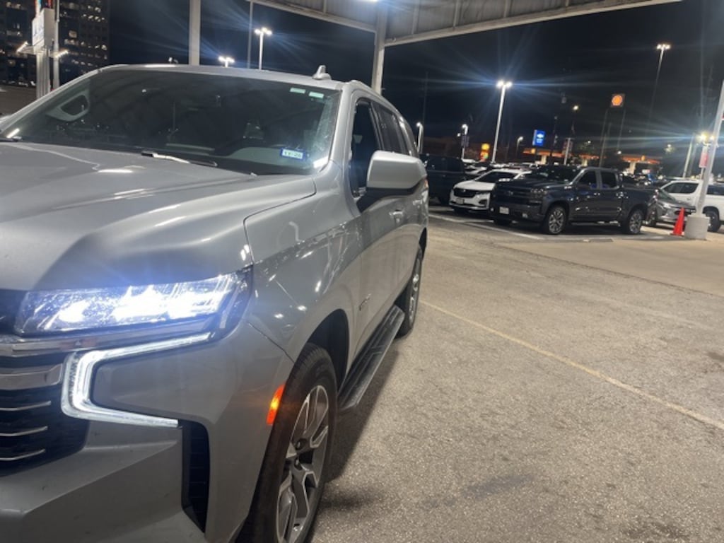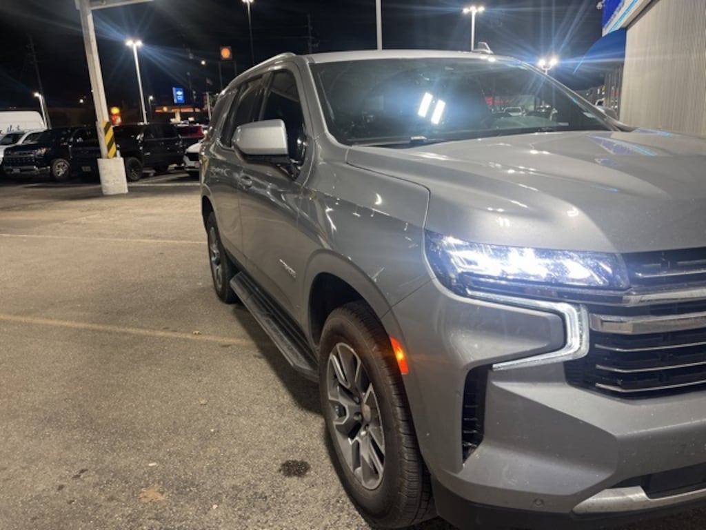 This 2023 Chevrolet Tahoe LT in Sterling Gray Metallic includes the following features: EcoTec3 5.3L V8 10-Speed Automatic with Overdrive RWD License Plate Front Mounting Package, Preferred Equipment Group 1LT (1st & 2nd Row Color-Keyed Carpeted Floor Mats, Auto-Dimming Inside Rear-View Mirror, Bose 9-Speaker Stereo Audio System Feature, Bright Front & Rear Door Sill Plates, Color-Keyed Carpeting Floor Covering, Driver & Front Outboard Passenger Airbags, Enhanced Driver Information Center, Floor Console w/Storage Area, Hands-Free Rear Power Programmable Liftgate, Infotainment Display, LED Daytime Running Lamps, Memory Settings for Driver, Remote Start, SiriusXM Radio w/360L, Universal Home Remote, Wireless Charging, and Wrapped Steering Wheel), Black Leather, 10-Way Power Driver & Passenger Seat Adjusters, 2nd Row Manual Bucket Seats, 3.23 Rear Axle Ratio, 3rd row seats: split-bench, 4-Wheel Disc Brakes, 9 Speakers, ABS brakes, Air Conditioning, Alloy wheels, AM/FM radio: SiriusXM with 360L, Apple CarPlay/Android Auto, Auto High-beam Headlights, Auto-dimming Rear-View mirror, Automatic temperature control, Brake assist, Bumpers: body-color, Compass, Delay-off headlights, Driver door bin, Driver vanity mirror, Dual front impact airbags, Dual front side impact airbags, Electronic Stability Control, Emergency communication system: OnStar and Chevrolet connected services capable, Four wheel independent suspension, Front anti-roll bar, Front Bucket Seats, Front Center Armrest, Front dual zone A/C, Front High-Back Reclining Bucket Seats, Front reading lights, Fully automatic headlights, Garage door transmitter, Heated door mirrors, Heated Driver & Front Passenger Seats, Heated front seats, Illuminated entry, Leather-Appointed Seat Trim, Low tire pressure warning, Memory seat, Navigation System, Occupant sensing airbag, Outside temperature display, Overhead airbag, Overhead console, Panic alarm, Passenger door bin, Passenger vanity mirror, Power door mirrors, Power driver seat, Power Liftgate, Power passenger seat, Power steering, Power windows, Premium audio system: Chevrolet Infotainment 3 Premium, Premium Smooth Ride Suspension, Radio: Chevrolet Infotainment 3 Premium System, Rain sensing wipers, Rear air conditioning, Rear anti-roll bar, Rear reading lights, Rear seat center armrest, Rear window defroster, Rear window wiper, Remote keyless entry, Roof rack: rails only, Security system, Speed control, Speed-sensing steering, Split folding rear seat, Spoiler, Steering wheel mounted audio controls, Tachometer, Telescoping steering wheel, Tilt steering wheel, Traction control, Trip computer, Variably intermittent wipers, Voltmeter, Wheels: 18" x 8.5" Bright Silver Painted Aluminum, and Wheels: 20" x 9" Painted Aluminum. Recent Arrival!