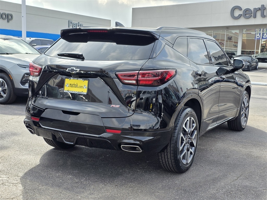 This 2024 Chevrolet Blazer RS in Black includes the following features: 3.6L V6 SIDI 9-Speed Automatic with Overdrive FWD Driver Confidence II Package (Adaptive Cruise Control, Enhanced Automatic Emergency Braking, HD Surround Vision, Rear Camera Mirror, Rear Camera Mirror Washer, and Safety Alert Seat), Preferred Equipment Group 1RS (Heated Steering Wheel), 3.49 Final Drive Axle Ratio, 4-Wheel Disc Brakes, 6-Way Power Front Passenger Seat Adjuster, 8 Speakers, 8-Way Power Driver Seat Adjuster, ABS brakes, Air Conditioning, Alloy wheels, AM/FM radio: SiriusXM with 360L, Apple CarPlay/Android Auto, Auto High-beam Headlights, Auto-dimming door mirrors, Auto-dimming Rear-View mirror, Automatic temperature control, Bose Premium 8-Speaker Audio System Feature, Brake assist, Bumpers: body-color, Child-Seat-Sensing Airbag, Compass, Delay-off headlights, Driver door bin, Driver vanity mirror, Dual front impact airbags, Dual front side impact airbags, Electronic Stability Control, Emergency communication system: OnStar and Chevrolet connected services capable, Four wheel independent suspension, Front anti-roll bar, Front Bucket Seats, Front Center Armrest, Front dual zone A/C, Front reading lights, Fully automatic headlights, Garage door transmitter, Heated door mirrors, Heated Driver & Front Passenger Seats, Heated front seats, Heated steering wheel, Illuminated entry, Knee airbag, Leather Shift Knob, Leather steering wheel, Low tire pressure warning, Navigation System, Occupant sensing airbag, Outside temperature display, Overhead airbag, Overhead console, Panic alarm, Passenger door bin, Passenger vanity mirror, Perforated Leather-Appointed Seat Trim, Power door mirrors, Power Driver Lumbar Control, Power driver seat, Power Liftgate, Power passenger seat, Power steering, Power windows, Premium audio system: Chevrolet Infotainment 3 Premium, Radio data system, Radio: Chevrolet Infotainment 3 Premium System, Rear anti-roll bar, Rear reading lights, Rear seat center armrest, Rear window defroster, Rear window wiper, Remote keyless entry, Ride & Handling Suspension, Security system, SiriusXM w/360L, Speed control, Speed-sensing steering, Split folding rear seat, Spoiler, Steering wheel mounted audio controls, Tachometer, Telescoping steering wheel, Tilt steering wheel, Traction control, Trip computer, Turn signal indicator mirrors, Variably intermittent wipers, Voltmeter, and Wheels: 20" Technical Gray Aluminum. Recent Arrival! 19/26 City/Highway MPG