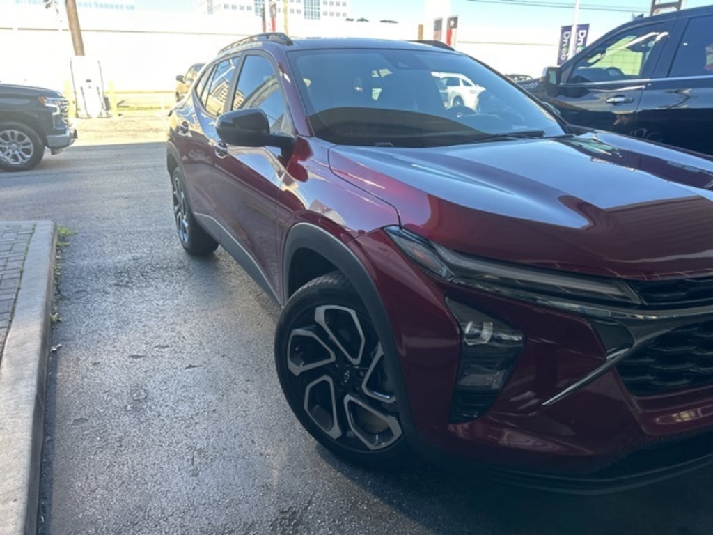 This 2025 Chevrolet Trax 2RS in Crimson Metallic includes the following features: 1.2L Ecotec Turbo DOHC DI w/VVT 6-Speed Automatic FWD Driver Confidence Package (Adaptive Cruise Control, Lane Change Alert with Side Blind Zone Alert, Rear Cross-Traffic Alert, and Rear Park Assist), License Plate Front Mounting Package, Preferred Equipment Group 2RS, Sunroof Package (Power Sliding Glass Sunroof with Manual Shade and Wireless Charging), Trax 2RS, 4D Sport Utility, 1.2L Ecotec Turbo DOHC DI w/VVT, 6-Speed Automatic, FWD, Crimson Metallic, Jet Black With Red Accents Cloth, 2-Way Adjustable Front Head Restraints, 2-Way Power Driver Lumbar Seat Adjuster, 3.50 Final Drive Axle Ratio, 4-Way Manual Front Passenger Seat Adjuster, 4-Wheel Disc Brakes, 6 Speakers, 6-Speaker Audio System Feature, 8-Way Power Driver Seat Adjuster, ABS brakes, Air Conditioning, Alloy wheels, AM/FM radio: SiriusXM, Auto High-beam Headlights, Automatic temperature control, Brake assist, Bumpers: body-color, Compass, Delay-off headlights, Driver door bin, Driver vanity mirror, Dual front impact airbags, Dual front side impact airbags, Electronic Stability Control, Emergency communication system: OnStar One Essentials, Evotex Seat Trim, Exterior Parking Camera Rear, Front anti-roll bar, Front Bucket Seats, Front Center Armrest, Front reading lights, Front wheel independent suspension, Fully automatic headlights, Heated door mirrors, Heated Driver and Front Passenger Seats, Heated front seats, Heated steering wheel, Illuminated entry, Leather steering wheel, Low tire pressure warning, Occupant sensing airbag, Outside temperature display, Overhead airbag, Overhead console, Panic alarm, Passenger door bin, Passenger vanity mirror, Power door mirrors, Power steering, Power windows, Premium audio system: Chevrolet Infotainment 3, Radio data system, Radio: AM/FM Stereo Audio System, Rear window defroster, Rear window wiper, Remote keyless entry, Security system, SiriusXM Trial Subscription, Speed control, Split folding rear seat, Spoiler, Sport steering wheel, Steering wheel mounted audio controls, Tachometer, Telescoping steering wheel, Tilt steering wheel, Traction control, Trip computer, Variably intermittent wipers, and Wheels: 19" Black-Painted Machined Aluminum. Recent Arrival! 28/32 City/Highway MPG