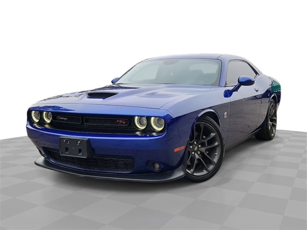 This 2020 Dodge Challenger R/T Scat Pack in Indigo Blue includes the following features: SRT HEMI 6.4L V8 MDS 8-Speed Automatic RWD Mopar Interior Appearance Group (Mopar Bright Door Sills, MOPAR Premium Floor Mats w/Logo, and Trunk Mat w/Logo), Quick Order Package 24G R/T Scat Pack (3.09 Rear Axle Ratio), Challenger R/T Scat Pack, 2D Coupe, SRT HEMI 6.4L V8 MDS, 8-Speed Automatic, RWD, Indigo Blue, Black Cloth, 1-Yr SiriusXM Guardian Trial, 230MM Rear Axle, 4-Wheel Disc Brakes, 4G LTE Wi-Fi Hot Spot, 5-Year SiriusXM Traffic Service, 5-Year SiriusXM Travel Link Service, 6 Speakers, 8.4" Touchscreen Display, ABS brakes, Air Conditioning, Alloy wheels, AM/FM radio: SiriusXM, Anti-whiplash front head restraints, Apple CarPlay, Apple CarPlay/Android Auto, Auto-dimming Rear-View mirror, Automatic temperature control, Black Fuel Filler Door, Black Grille w/Bezel, Brake assist, Bumpers: body-color, Compass, Delay-off headlights, Driver door bin, Driver vanity mirror, Dual front impact airbags, Dual front side impact airbags, Electronic Stability Control, Emergency communication system: SiriusXM Guardian, For Details, Visit DriveUconnect.com, Four wheel independent suspension, Front anti-roll bar, Front Bucket Seats, Front Center Armrest, Front dual zone A/C, Front fog lights, Front License Plate Bracket, Front reading lights, Fully automatic headlights, Garage door transmitter, Google Android Auto, GPS Antenna Input, GPS Navigation, HD Radio, Heated door mirrors, Heated front seats, Heated steering wheel, Illuminated entry, Integrated Center Stack Radio, Integrated Voice Command w/Bluetooth, Leather Shift Knob, Low tire pressure warning, Media Hub (2 USB, AUX), Outside temperature display, Overhead airbag, Overhead console, Panic alarm, ParkView Rear Back-Up Camera, Passenger door bin, Passenger vanity mirror, Power door mirrors, Power driver seat, Power steering, Power Sunroof, Power windows, Radio data system, Radio: Uconnect 4C Nav w/8.4" Display, Radio: Uconnect 4C w/8.4" Display, Rear anti-roll bar, Rear reading lights, Rear seat center armrest, Rear window defroster, Remote keyless entry, Rhombi 2-Pc Wheel Center Cap, Scat Pack Logo Houndstooth Seat, Security system, SiriusXM Satellite Radio, SiriusXM Traffic Plus, SiriusXM Travel Link, Speed control, Speed-sensing steering, Split folding rear seat, Spoiler, Sport steering wheel, Steering wheel mounted audio controls, Tachometer, Telescoping steering wheel, Tilt steering wheel, Traction control, Trip computer, USB Host Flip, Variably intermittent wipers, and Wheels: 20" x 9" Lo Gloss Granite CrystaL.