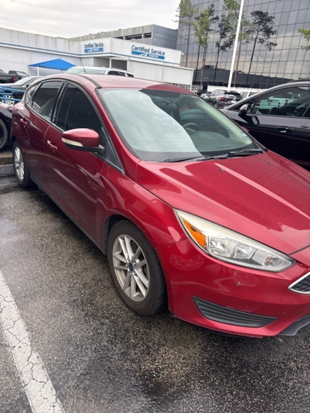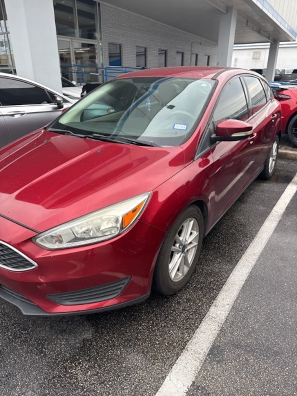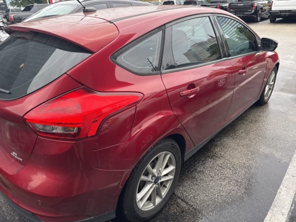 This 2016 Ford Focus SE in Ruby Red Metallic Tinted Clearcoat includes the following features: 2.0L 4-Cylinder DGI DOHC Automatic FWD Focus SE, 4D Hatchback, 2.0L 4-Cylinder DGI DOHC, Automatic, FWD, Ruby Red Metallic Tinted Clearcoat, 16" Painted Aluminum Alloy Wheels, 6 Speakers, ABS brakes, Air Conditioning, Alloy wheels, AM/FM radio, Brake assist, Bumpers: body-color, CD player, Cloth Front Bucket Seats, Compass, Delay-off headlights, Driver door bin, Driver vanity mirror, Dual front impact airbags, Dual front side impact airbags, Electronic Stability Control, Emergency communication system: 911 Assist, Exterior Parking Camera Rear, Four wheel independent suspension, Front anti-roll bar, Front Bucket Seats, Front Center Armrest, Front reading lights, Fully automatic headlights, Illuminated entry, Knee airbag, Low tire pressure warning, Occupant sensing airbag, Outside temperature display, Overhead airbag, Overhead console, Panic alarm, Passenger door bin, Passenger vanity mirror, Power door mirrors, Power steering, Power windows, Radio data system, Radio: AM/FM Single-CD/MP3-Capable, Rear anti-roll bar, Rear Parking Sensors, Rear window defroster, Rear window wiper, Remote keyless entry, Speed control, Split folding rear seat, Spoiler, Steering wheel mounted audio controls, SYNC, Tachometer, Telescoping steering wheel, Tilt steering wheel, Traction control, Trip computer, Turn signal indicator mirrors, and Variably intermittent wipers. Recent Arrival!