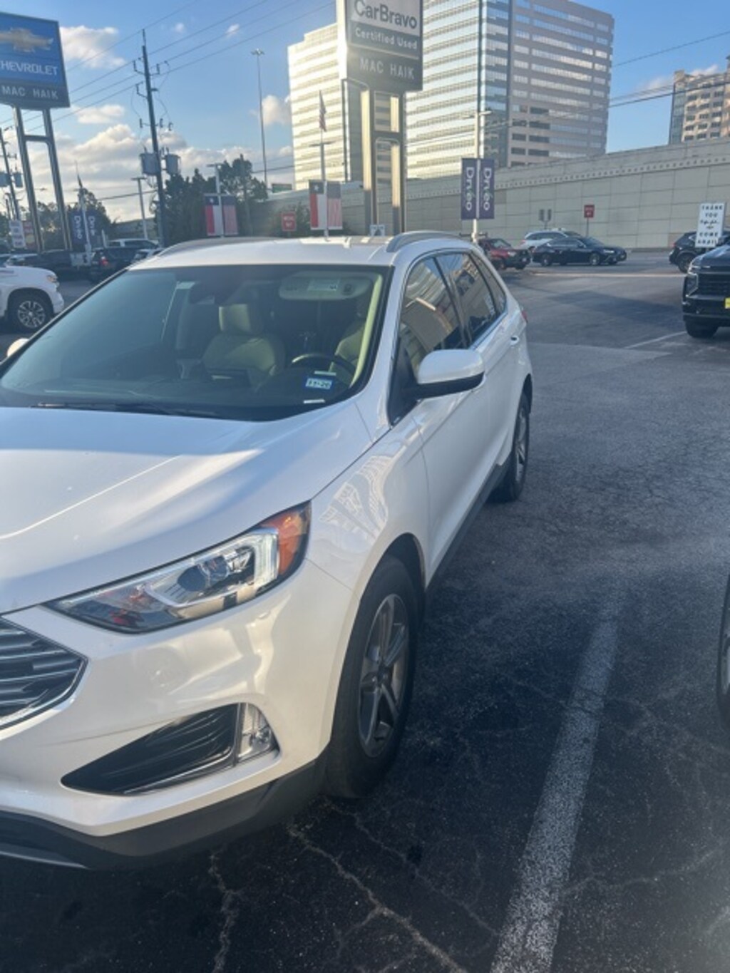 At Mac Haik Chevrolet, we believe in customer satisfaction and try to make it our mission that each and every shopper is happy with our service. Drivers in Katy, Spring, Cypress, Tomball, Sugar Land, and all Houston surrounding areas have made the drive to Mac Haik Chevrolet again and again. Visit us now and experience why Mac Haik Chevrolet is Houston's most awarded dealership of all time! Odometer is 12190 miles below market average! CLEAN CARFAX, LOW MILEAGE, ONE OWNER, NO ACCIDENTS, NO DAMAGE, LOCAL TRADE, Edge SEL, 4D Sport Utility, EcoBoost 2.0L I4 GTDi DOHC Turbocharged VCT, 8-Speed Automatic, FWD, White, Dune Leather.