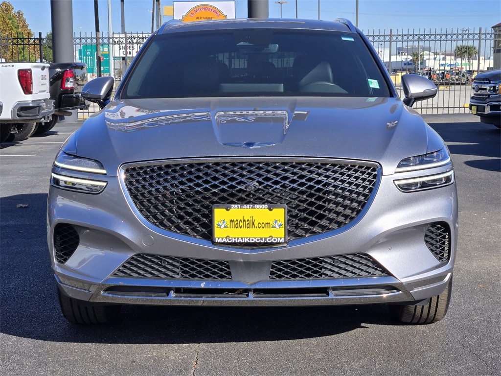 This 2022 Genesis GV70 2.5T in Savile Silver includes the following features: 2.5L DOHC 8-Speed Automatic AWD Advanced Package (2nd Row 110V AC Power Outlet, 4-Way Power Lumbar Front Passenger Seat, Adjustable Interior Ambient Lighting, Advanced Rear Occupant Alert, Blind-Spot View Monitor, Front Parking Distance Warning, Front Passenger Seat Walk-In Device, Heated Steering Wheel, Integrated Memory System (IMS), Lexicon Premium Audio, Manual Rear Side Sunshades, Panoramic Sunroof, Power Folding Auto-Dimming Outside Mirrors, Power Tilt & Telescopic Steering Wheel, Rear Parking Collision-Avoidance Assist, Remote Smart Parking Assist, Surround View Monitor, and Ventilated Front Seats), Mac Haik Certified, 4-Wheel Disc Brakes, 4.181 Axle Ratio, 9 Speakers, ABS brakes, Air Conditioning, Alloy wheels, Aluminum Trim w/Spin Brushed Pattern, AM/FM radio: SiriusXM, Android Auto & Apple CarPlay, Anti-whiplash front head restraints, Auto High-beam Headlights, Auto-dimming Rear-View mirror, Automatic temperature control, Brake assist, Bumpers: body-color, Delay-off headlights, Driver door bin, Driver vanity mirror, Dual front impact airbags, Dual front side impact airbags, Electronic Stability Control, Emergency communication system, Exterior Parking Camera Rear, Four wheel independent suspension, Front anti-roll bar, Front Bucket Seats, Front Center Armrest w/Storage, Front dual zone A/C, Front reading lights, Fully automatic headlights, Garage door transmitter: HomeLink, Heated door mirrors, Heated Front Bucket Seats, Heated front seats, Illuminated entry, Knee airbag, Leather Seating Surfaces, Leatherette Seating Surfaces, Low tire pressure warning, Navigation System, Occupant sensing airbag, Outside temperature display, Overhead airbag, Overhead console, Panic alarm, Passenger door bin, Passenger vanity mirror, Power door mirrors, Power driver seat, Power Liftgate, Power passenger seat, Power steering, Power windows, Radio: AM/FM/SiriusXM/HD Premium Audio System, Rain sensing wipers, Rear anti-roll bar, Rear Parking Sensors, Rear reading lights, Rear seat center armrest, Rear window defroster, Rear window wiper, Remote keyless entry, Security system, Speed control, Speed-sensing steering, Speed-Sensitive Wipers, Split folding rear seat, Spoiler, Steering wheel mounted audio controls, Tachometer, Telescoping steering wheel, Tilt steering wheel, Traction control, Trip computer, Turn signal indicator mirrors, Variably intermittent wipers, Wave Line Backlit Trim, Wheels: 18" Real Steel Gray Alloy, and Wheels: 19" Dark Hyper Silver Aluminum. 22/28 City/Highway MPG