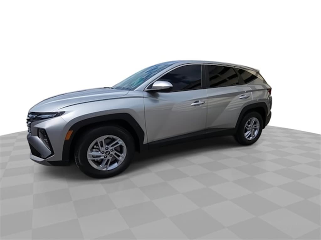This 2025 Hyundai Tucson SE in Shimmering Silver includes the following features: 2.5L I4 DGI DOHC 16V LEV3-SULEV30 187hp 8-Speed Automatic with SHIFTRONIC FWD Option Group 01, Tucson SE, 4D Sport Utility, 2.5L I4 DGI DOHC 16V LEV3-SULEV30 187hp, 8-Speed Automatic with SHIFTRONIC, FWD, Shimmering Silver, Black Leather, 17" Alloy Wheels, 4-Wheel Disc Brakes, 6 Speakers, ABS brakes, Air Conditioning, All Season Fitted Liners, Alloy wheels, AM/FM radio: SiriusXM, Apple CarPlay & Android Auto, Auto High-beam Headlights, Brake assist, Bumpers: body-color, Cargo Net, Cargo Tray, Carpeted Floor Mats, Delay-off headlights, Driver door bin, Driver vanity mirror, Dual front impact airbags, Dual front side impact airbags, Electronic Stability Control, Emergency communication system: Bluelink+, First Aid Kit, Four wheel independent suspension, Front anti-roll bar, Front Bucket Seats, Front Center Armrest, Front reading lights, Fully automatic headlights, Illuminated entry, Low tire pressure warning, Mud Guards, Occupant sensing airbag, Outside temperature display, Overhead airbag, Overhead console, Panic alarm, Passenger door bin, Passenger vanity mirror, Power door mirrors, Power steering, Power windows, Radio data system, Radio: AM/FM/HD Audio System, Rear anti-roll bar, Rear reading lights, Rear seat center armrest, Rear side impact airbag, Rear window defroster, Rear window wiper, Remote keyless entry, Security system, Speed control, Split folding rear seat, Spoiler, Stain & Odor Resistant Cloth Seat Trim, Steering wheel mounted audio controls, Tachometer, Telescoping steering wheel, Tilt steering wheel, Traction control, Trip computer, and Variably intermittent wipers. Recent Arrival! 25/33 City/Highway MPG