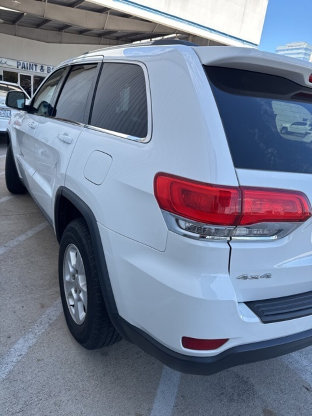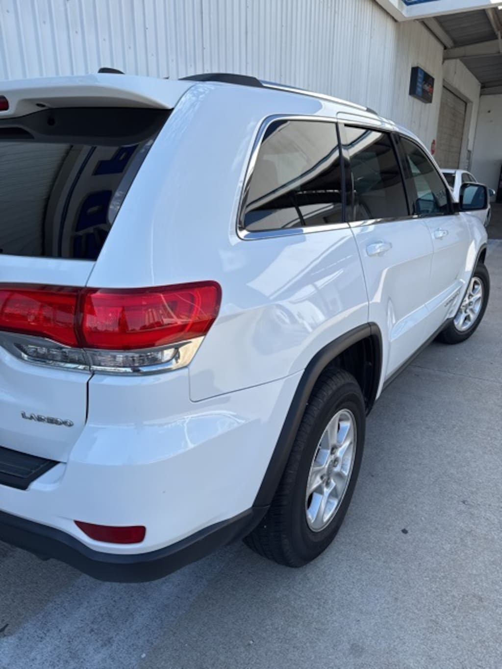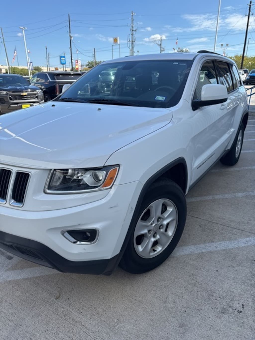 This 2014 Jeep Grand Cherokee Laredo in Bright White Clearcoat includes the following features: 3.6L V6 Flex Fuel 24V VVT 8-Speed Automatic 4WD Grand Cherokee Laredo, 4D Sport Utility, 3.6L V6 Flex Fuel 24V VVT, 8-Speed Automatic, 4WD, Bright White Clearcoat, 17" x 8.0" Aluminum Wheels, 3.45 Rear Axle Ratio, 4-Wheel Disc Brakes, 6 Speakers, ABS brakes, Air Conditioning, Alloy wheels, AM/FM radio, Anti-whiplash front head restraints, Automatic temperature control, Brake assist, Bumpers: body-color, Cloth Low-Back Bucket Seats, Compass, Delay-off headlights, Driver door bin, Driver vanity mirror, Dual front impact airbags, Dual front side impact airbags, Electronic Stability Control, Four wheel independent suspension, Front anti-roll bar, Front Bucket Seats, Front Center Armrest w/Storage, Front dual zone A/C, Front fog lights, Front reading lights, Fully automatic headlights, Heated door mirrors, Illuminated entry, Knee airbag, Leather Shift Knob, Low Beam Daytime Running Headlamps, Low tire pressure warning, Normal Duty Suspension, Occupant sensing airbag, Outside temperature display, Overhead airbag, Overhead console, Panic alarm, Passenger door bin, Passenger vanity mirror, Power door mirrors, Power steering, Power windows, Radio data system, Radio: Uconnect 5.0 AM/FM/BT, Rear anti-roll bar, Rear reading lights, Rear seat center armrest, Rear window defroster, Rear window wiper, Remote keyless entry, Speed control, Speed-Sensitive Wipers, Split folding rear seat, Spoiler, Steering wheel mounted audio controls, Tachometer, Telescoping steering wheel, Tilt steering wheel, Traction control, Trip computer, and Variably intermittent wipers. Recent Arrival!