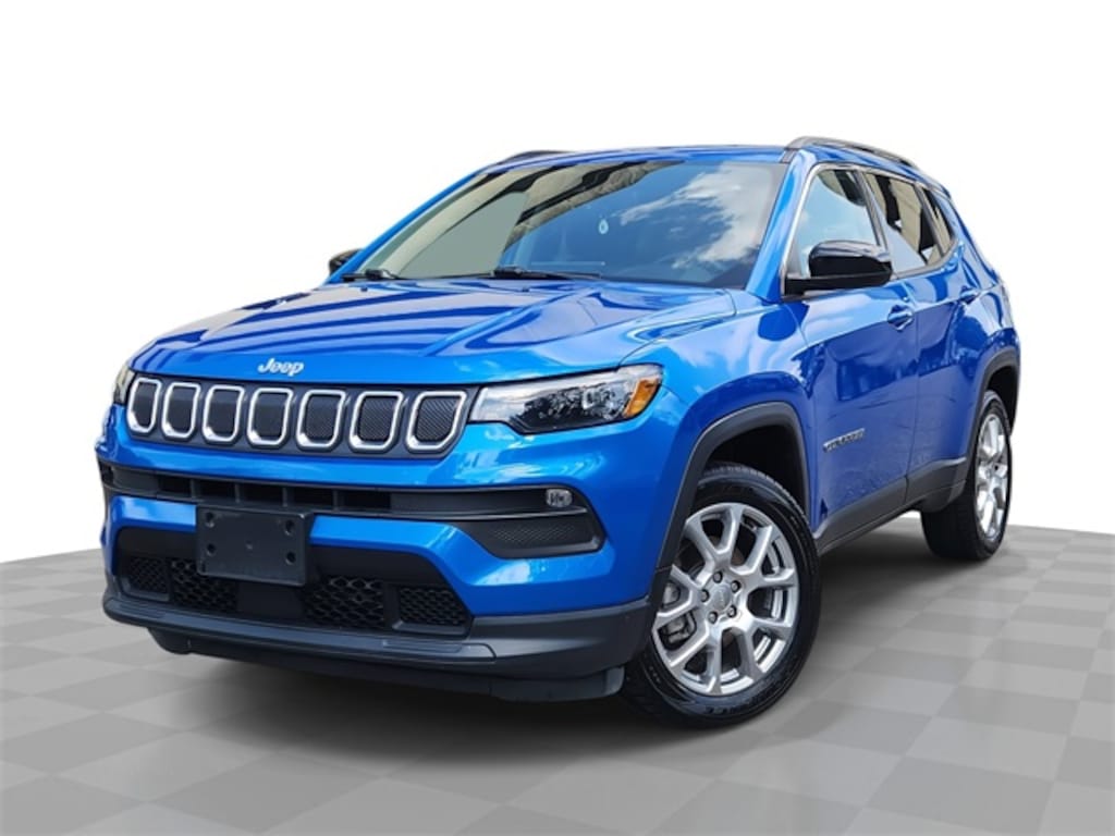 This 2022 Jeep Compass Latitude Lux in Laser Blue Pearlcoat includes the following features: 2.4L I4 9-Speed 948TE Automatic 4WD Premium Lighting Group (LED Low/Highbeam Projector Headlamps, Premium LED Fog Lamps, and Premium Taillamps), Quick Order Package 2GL, Sun and Sound Group (Power Front/Fixed Rear Full Sunroof and Premium Alpine Speaker System), Compass Latitude Lux, 4D Sport Utility, 2.4L I4, 9-Speed 948TE Automatic, 4WD, Laser Blue Pearlcoat, Black Leather, 3.73 Axle Ratio, 4-Wheel Disc Brakes, 6 Speakers, ABS brakes, Air Conditioning, Alloy wheels, AM/FM radio: SiriusXM, Anti-whiplash front head restraints, Auto High-beam Headlights, Auto-dimming Rear-View mirror, Brake assist, Bumpers: body-color, Compass, Delay-off headlights, Driver door bin, Driver vanity mirror, Dual front impact airbags, Dual front side impact airbags, Electronic Stability Control, Emergency communication system: SiriusXM Guardian, Four wheel independent suspension, Front anti-roll bar, Front Bucket Seats, Front Center Armrest w/Storage, Front fog lights, Front License Plate Bracket, Front reading lights, Fully automatic headlights, Heated door mirrors, Heated front seats, Heated steering wheel, Illuminated entry, Knee airbag, Leather Shift Knob, Leather Trimmed Bucket Seats, Low tire pressure warning, Occupant sensing airbag, Outside temperature display, Overhead airbag, Overhead console, Panic alarm, ParkView Rear Back-Up Camera, Passenger door bin, Passenger vanity mirror, Power door mirrors, Power driver seat, Power steering, Power windows, Radio: Uconnect 5 w/10.1" Display, Rear anti-roll bar, Rear seat center armrest, Rear window defroster, Rear window wiper, Remote keyless entry, Roof rack: rails only, Security system, Speed control, Speed Control (DISC), Split folding rear seat, Spoiler, Steering wheel mounted audio controls, Tachometer, Telescoping steering wheel, Tilt steering wheel, Traction control, Trip computer, Variably intermittent wipers, and Wheels: 18" x 7.0" Painted Aluminum. Recent Arrival! 22/30 City/Highway MPG
