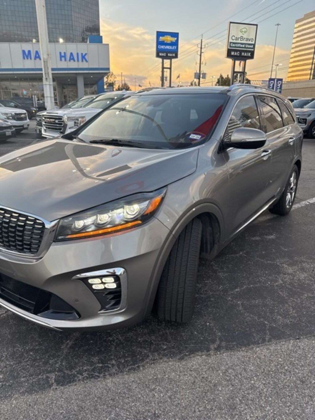 This 2019 Kia Sorento SX Limited in Titanium Silver includes the following features: V6 8-Speed Automatic FWD Sorento SX Limited, 4D Sport Utility, V6, 8-Speed Automatic, FWD, Titanium Silver, Satin Black Leather, 10 Speakers, 3.32 Axle Ratio, 3rd row seats: split-bench, 4-Wheel Disc Brakes, ABS brakes, Air Conditioning, Alloy wheels, AM/FM radio: SiriusXM, Apple CarPlay & Android Auto, Auto High-beam Headlights, Auto-dimming Rear-View mirror, Automatic temperature control, Brake assist, Bumpers: body-color, Chrome wheels, Delay-off headlights, Driver door bin, Driver vanity mirror, Dual front impact airbags, Dual front side impact airbags, Electronic Stability Control, Emergency communication system: UVO3, Four wheel independent suspension, Front anti-roll bar, Front Bucket Seats, Front Center Armrest, Front dual zone A/C, Front fog lights, Front reading lights, Fully automatic headlights, Garage door transmitter: HomeLink, harman/kardon® Speakers, Heated & Ventilated Front Bucket Seats, Heated door mirrors, Heated front seats, Heated rear seats, Heated steering wheel, Illuminated entry, Interior Lighting Kit, Leather steering wheel, Low tire pressure warning, Memory seat, Navigation System, Occupant sensing airbag, Outside temperature display, Overhead airbag, Overhead console, Panic alarm, Passenger door bin, Passenger vanity mirror, Power door mirrors, Power driver seat, Power Liftgate, Power moonroof, Power passenger seat, Power steering, Power windows, Premium Nappa Leather Seat Trim, Puddle Lights, Radio data system, Radio: UVO eServices w/Premium Navigation, Rain sensing wipers, Rear air conditioning, Rear anti-roll bar, Rear reading lights, Rear seat center armrest, Rear window defroster, Rear window wiper, Remote keyless entry, Roof rack: rails only, Security system, Speed control, Speed-sensing steering, Split folding rear seat, Spoiler, Steering wheel mounted audio controls, SXL Black Metallic Nappa Leather Seat Trim, Tachometer, Telescoping steering wheel, Tilt steering wheel, Traction control, Trip computer, Turn signal indicator mirrors, Variably intermittent wipers, Ventilated front seats, and Wheels: 19" x 7.5" Chrome Finish Alloy. Recent Arrival! 19/26 City/Highway MPG