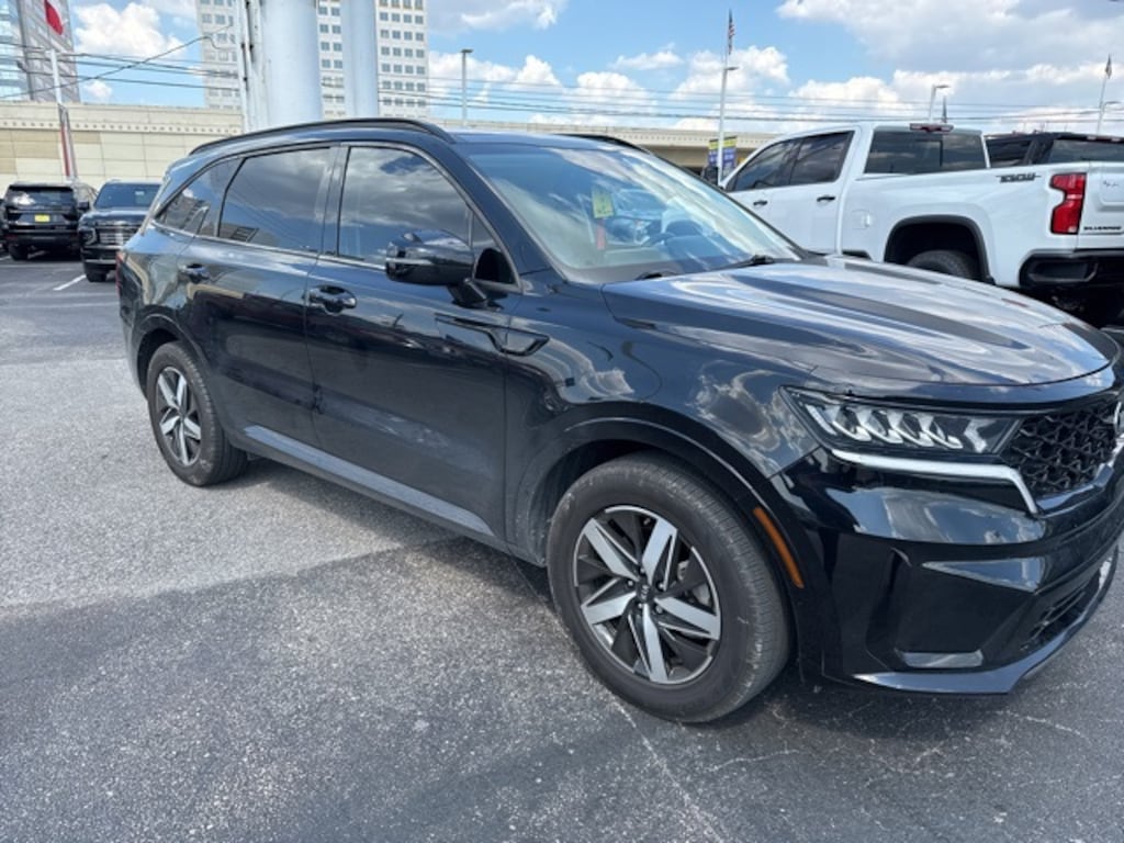 This 2021 Kia Sorento S in Ebony Black includes the following features: 2.5L I4 DGI DOHC 16V LEV3-ULEV70 191hp 8-Speed Automatic FWD Panoramic Sunroof Package (Power Sunroof w/Power Sunshade), Sorento S, 4D Sport Utility, 2.5L I4 DGI DOHC 16V LEV3-ULEV70 191hp, 8-Speed Automatic, FWD, Ebony Black, Black Artificial Leather, 18" Machine-Finished Alloy Wheels, 3.798 Axle Ratio, 3rd row seats: split-bench, 4-Wheel Disc Brakes, 6 Speakers, ABS brakes, Air Conditioning, Alloy wheels, AM/FM radio: SiriusXM, Apple CarPlay & Android Auto, Auto High-beam Headlights, Automatic temperature control, Brake assist, Bumpers: body-color, Cargo Net, Carpeted Floor Mats, Delay-off headlights, Driver door bin, Driver vanity mirror, Dual front impact airbags, Dual front side impact airbags, Electronic Stability Control, Exterior Parking Camera Rear, Four wheel independent suspension, Front anti-roll bar, Front Bucket Seats, Front Center Armrest, Front dual zone A/C, Front reading lights, Fully automatic headlights, Heated door mirrors, Heated Front Bucket Seats, Heated front seats, Illuminated entry, Knee airbag, Leather Shift Knob, Leather steering wheel, Low tire pressure warning, Occupant sensing airbag, Outside temperature display, Overhead airbag, Overhead console, Panic alarm, Passenger door bin, Passenger vanity mirror, Power door mirrors, Power driver seat, Power steering, Power windows, Premium Leatherette Seat Trim, Radio data system, Radio: AM/FM Audio System, Rear air conditioning, Rear anti-roll bar, Rear Parking Sensors, Rear seat center armrest, Rear window defroster, Rear window wiper, Remote keyless entry, Roof rack: rails only, Security system, Speed control, Speed-sensing steering, Split folding rear seat, Spoiler, Steering wheel mounted audio controls, Tachometer, Telescoping steering wheel, Tilt steering wheel, Traction control, Trip computer, Turn signal indicator mirrors, Variably intermittent wipers, and Wheel Locks. Recent Arrival! 24/29 City/Highway MPG