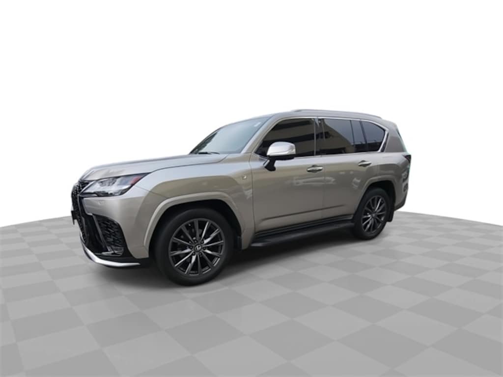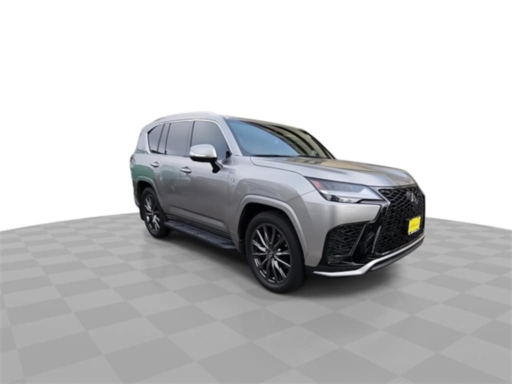 This 2023 Lexus LX 600 F SPORT in Atomic Silver includes the following features: V6 10-Speed Automatic 4WD LX 600 F SPORT, 4D Sport Utility, V6, 10-Speed Automatic, 4WD, Atomic Silver, Black Leather, 10 Speakers, 3.307 Axle Ratio, 3rd row seats: split-bench, 4-Wheel Disc Brakes, ABS brakes, Adaptive suspension, Air Conditioning, Alloy wheels, Aluminum F SPORT Door Trim, AM/FM radio: SiriusXM, Apple CarPlay/Android Auto, Auto High-beam Headlights, Auto tilt-away steering wheel, Auto-dimming door mirrors, Auto-dimming Rear-View mirror, Automatic temperature control, Brake assist, Bumpers: body-color, Compass, Cool Box, Delay-off headlights, Dimple Leather Heated Steering Wheel, Door auto-latch, Driver door bin, Driver vanity mirror, Dual front impact airbags, Dual front side impact airbags, Electronic Stability Control, Emergency communication system: Safety Connect (up to 10-year trial subscription included), Exterior Parking Camera Rear, F SPORT Rear Bumper, Fr & Rr Suspension w/Illuminated Door Scuff Plate, Front & Rear Seat Ventilation Air Conditioner, Front anti-roll bar, Front Bucket Seats, Front Center Armrest, Front dual zone A/C, Front fog lights, Front reading lights, Front wheel independent suspension, Fully automatic headlights, Garage door transmitter: HomeLink, Headlight cleaning, Heads-Up Display, Heated & Ventilated Front Bucket Seats, Heated door mirrors, Heated front seats, Heated rear seats, Heated steering wheel, Illuminated entry, Illuminated Entry System, Knee airbag, Leather Shift Knob, Leather steering wheel, Low tire pressure warning, Memory seat, Navigation System, Occupant sensing airbag, Outside temperature display, Overhead airbag, Overhead console, Panic alarm, Passenger door bin, Passenger vanity mirror, Power door mirrors, Power driver seat, Power Liftgate, Power moonroof, Power passenger seat, Power steering, Power windows, Radio data system, Radio: Lexus Interface, Rain sensing wipers, Rear air conditioning, Rear anti-roll bar, Rear dual zone A/C, Rear reading lights, Rear seat center armrest, Rear side impact airbag, Rear Torque Sensing LSD Differential Lock, Rear window defroster, Rear window wiper, Reclining 3rd row seat, Remote keyless entry, Roof rack: rails only, Security system, Semi-Aniline Leather Seat Trim, Speed control, Speed-sensing steering, Split folding rear seat, Spoiler, Steering wheel memory, Steering wheel mounted audio controls, Tachometer, Telescoping steering wheel, Tilt steering wheel, Traction control, Trip computer, Turn signal indicator mirrors, Variably intermittent wipers, Ventilated front seats, Voltmeter, and Wheels: 22" Forged F SPORT. Recent Arrival!