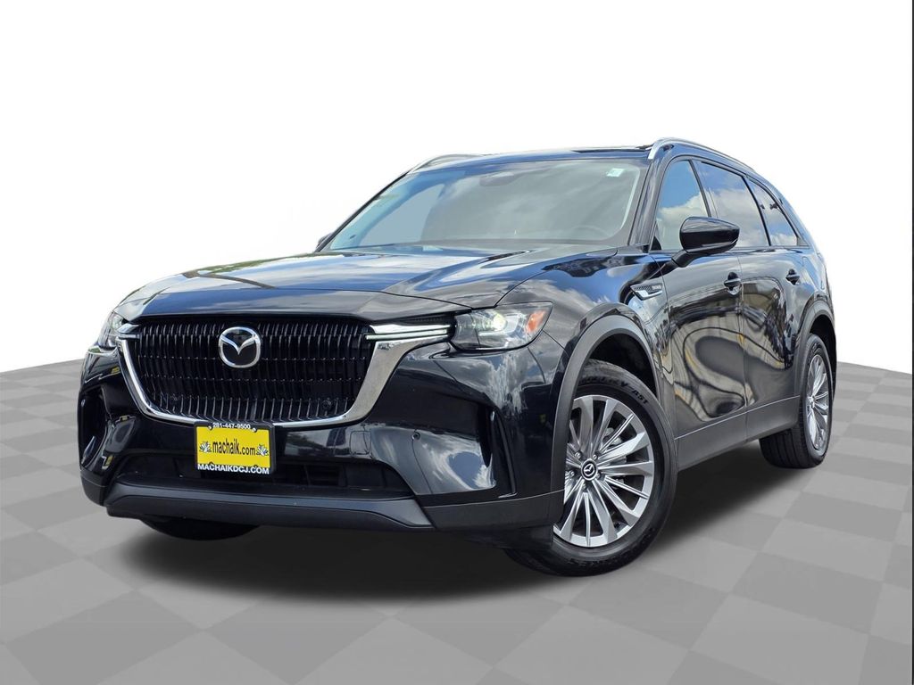 This 2025 Mazda CX-90 3.3 Turbo Preferred in Jet Black Mica includes the following features: I6 Turbo 8-Speed Automatic AWD 2nd-Row Captain's Chairs, 3rd row seats: bench, 4-Wheel Disc Brakes, 8 Speakers, ABS brakes, Air Conditioning, Alloy wheels, AM/FM radio, Auto High-beam Headlights, Automatic temperature control, Brake assist, Bumpers: body-color, Compass, Delay-off headlights, Driver door bin, Driver vanity mirror, Dual front impact airbags, Dual front side impact airbags, E911 Automatic Emergency Notification, Electronic Stability Control, Emergency communication system: MAZDA CONNECT, Exterior Parking Camera Rear, Four wheel independent suspension, Front anti-roll bar, Front Bucket Seats, Front Center Armrest w/Storage, Front dual zone A/C, Front reading lights, Fully automatic headlights, Heated door mirrors, Heated Front Bucket Seats, Heated front seats, Illuminated entry, Infotainment System Voice Command, Knee airbag, Leather Seat Trim, Leather Shift Knob, Leather steering wheel, Low tire pressure warning, Mazda Connected Services, Occupant sensing airbag, Outside temperature display, Overhead airbag, Overhead console, Pandora Internet Radio Integration, Panic alarm, Passenger door bin, Passenger vanity mirror, Power door mirrors, Power driver seat, Power Liftgate, Power moonroof, Power passenger seat, Power steering, Power windows, Radio Broadcast Data System Program Information, Radio data system, Radio: AM/FM w/HD/8-Speaker Sound System, Rain sensing wipers, Rear air conditioning, Rear anti-roll bar, Rear reading lights, Rear seat center armrest, Rear window defroster, Rear window wiper, Remote keyless entry, SMS Text Msg Audio Delivery & Reply, Speed control, Speed-sensing steering, Split folding rear seat, Spoiler, Steering wheel mounted audio controls, Tachometer, Telescoping steering wheel, Tilt steering wheel, Traction control, Trip computer, Turn signal indicator mirrors, Variably intermittent wipers, and Wheels: 19" x 8.5J Aluminum Alloy. Recent Arrival! 24/28 City/Highway MPG