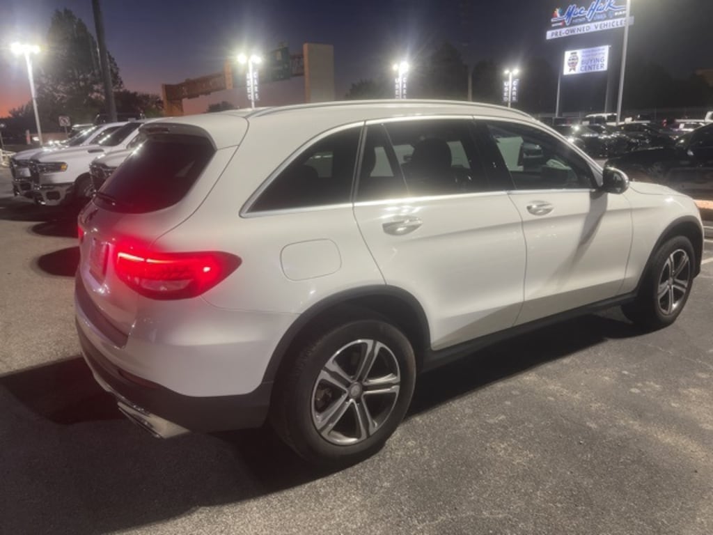 This 2017 Mercedes-Benz GLC GLC 300 in Polar White includes the following features: 2.0L Turbocharged 9-Speed Automatic RWD GLC 300, 4D Sport Utility, 2.0L Turbocharged, 9-Speed Automatic, RWD, Polar White, 18" 5-Spoke Alloy Wheels, 3.27 Axle Ratio, 4-Wheel Disc Brakes, 6 Speakers, ABS brakes, Air Conditioning, Alloy wheels, AM/FM radio, Anti-whiplash front head restraints, Auto tilt-away steering wheel, Auto-dimming door mirrors, Auto-dimming Rear-View mirror, Automatic temperature control, Brake assist, Bumpers: body-color, CD player, Child-Seat-Sensing Airbag, Delay-off headlights, Driver door bin, Driver vanity mirror, Dual front impact airbags, Dual front side impact airbags, Electronic Stability Control, Emergency communication system: mbrace, Exterior Parking Camera Rear, Four wheel independent suspension, Front anti-roll bar, Front Bucket Seats, Front Center Armrest, Front dual zone A/C, Front reading lights, Fully automatic headlights, Garage door transmitter: Homelink, Genuine wood console insert, Genuine wood dashboard insert, Genuine wood door panel insert, Heated door mirrors, Illuminated entry, Knee airbag, Leather steering wheel, Low tire pressure warning, MB-Tex Upholstery, Memory seat, Occupant sensing airbag, Outside temperature display, Overhead airbag, Overhead console, Panic alarm, Passenger door bin, Passenger vanity mirror, Power door mirrors, Power driver seat, Power Liftgate, Power passenger seat, Power steering, Power windows, Premium audio system: COMAND®, Radio data system, Radio: Audio 20 w/Single CD/DVD, Rain sensing wipers, Rear anti-roll bar, Rear fog lights, Rear reading lights, Rear seat center armrest, Rear window defroster, Rear window wiper, Remote keyless entry, Roof rack: rails only, Security system, Speed control, Speed-sensing steering, Split folding rear seat, Steering wheel memory, Steering wheel mounted audio controls, Tachometer, Telescoping steering wheel, Tilt steering wheel, Traction control, Trip computer, Turn signal indicator mirrors, Variably intermittent wipers, and Weather band radio. Recent Arrival! 22/28 City/Highway MPG