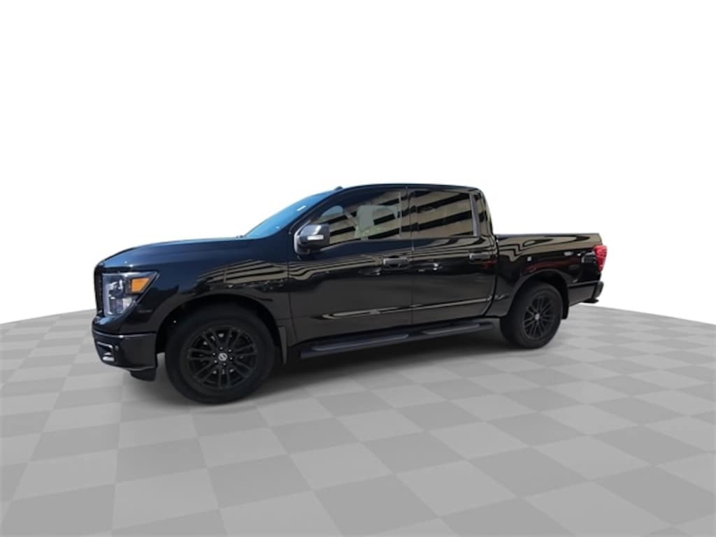 This 2019 Nissan Titan SV in Magnetic Black Metallic includes the following features: 5.6L V8 7-Speed Automatic 4WD Midnight Edition (Black Exterior Badging, Black Mirrors & Door Handles, Black Step Rails, Body Color Front & Rear Bumpers, Body Color Front Grille w/Dark Insert, Charcoal Interior Trim, Dark Headlamps, Fog Lamps w/Black Fog Lamp Finishers, Midnight Edition Floor Mats, and Wheels: 20" Accessory), SV Convenience Package (110V/12V Outlets In Back Of Center Console, 2 Illuminated USB-A Ports In Back Of Center Console, 4-Pin/7-Pin Wiring Harness Connector (Rear Bumper), Auto-Dimming Rear-View Mirror, Automatic On/Off Headlights, Blind Spot Warning w/Rear Cross Traffic Alert, Chrome Interior Door Locks, Convex Spotter Mirror, Dual Zone Automatic HVAC, Front & Rear Parking Sensors, Heated Front Captain's Chairs, Intelligent Key System, Leather-Wrapped Steering Wheel, Nissan Navigation System, Painted Rear Bumper, Power Sliding Rear Window w/Defogger, Rain Sensing Wipers, Rear Air Conditioning Vents, Receiver Hitch, and Universal Garage Door Opener), Titan SV, 4D Crew Cab, 5.6L V8, 4WD, Magnetic Black Metallic, Black Cloth, 2.937 Axle Ratio, 4-Wheel Disc Brakes, 5.5' Drop-In Bed Liner, 6 Speakers, ABS brakes, Air Conditioning, Alloy wheels, AM/FM radio: SiriusXM, Brake assist, Bumpers: chrome, CD player, Cloth Seat Trim, Driver door bin, Driver vanity mirror, Dual front impact airbags, Dual front side impact airbags, Electronic Stability Control, Front anti-roll bar, Front Center Armrest w/Storage, Front Manual Split Bench Seat (40/20/40), Front reading lights, Front wheel independent suspension, Heated door mirrors, Illuminated entry, Low tire pressure warning, Midnight Edition Floormats, Midnight Edition Step Rails, NissanConnect featuring Apple CarPlay and Android Auto, Occupant sensing airbag, Outside temperature display, Overhead airbag, Overhead console, Panic alarm, Passenger door bin, Passenger vanity mirror, Power door mirrors, Power steering, Power windows, Radio data system, Radio: NissanConnect AM/FM w/SiriusXM, Rear anti-roll bar, Rear Bumper Step, Rear seat center armrest, Rear step bumper, Rear window defroster, Remote keyless entry, Security system, Speed control, Speed-sensing steering, Speed-Sensitive Wipers, Splash Guards, Split folding rear seat, Steering wheel mounted audio controls, Tachometer, Telescoping steering wheel, Tilt steering wheel, Traction control, Trip computer, Turn signal indicator mirrors, Variably intermittent wipers, Voltmeter, and Wheels: 18" x 8" Silver Painted Alloy. Recent Arrival!