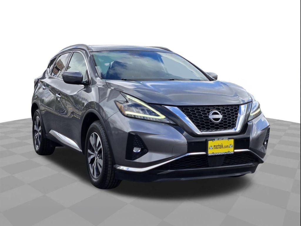 This 2023 Nissan Murano SV in Gun Metallic includes the following features: 3.5L V6 DOHC 24V CVT with Xtronic AWD Mac Haik Certified, CVT with Xtronic, AWD, 4-Wheel Disc Brakes, 4.667 Axle Ratio, 6 Speakers, ABS brakes, Air Conditioning, Alloy wheels, AM/FM radio: SiriusXM, AM/FM/CD/MP3/WMA Audio System, Auto High-beam Headlights, Auto-dimming Rear-View mirror, Automatic temperature control, Blind Spot Warning, Brake assist, Bumpers: body-color, Carpeted Floor Mats & Carpeted Cargo Mat, CD player, Child-Seat-Sensing Airbag, Delay-off headlights, Driver door bin, Driver vanity mirror, Dual front impact airbags, Dual front side impact airbags, Electronic Stability Control, Four wheel independent suspension, Front anti-roll bar, Front Bucket Seats, Front Center Armrest, Front dual zone A/C, Front fog lights, Front reading lights, Fully automatic headlights, Heated door mirrors, Heated Front Bucket Seats, Heated front seats, Illuminated entry, Knee airbag, Leatherette-Appointed Seat Trim, Low tire pressure warning, NissanConnect featuring Apple CarPlay and Android Auto, Occupant sensing airbag, Outside temperature display, Overhead airbag, Overhead console, Panic alarm, Passenger door bin, Passenger vanity mirror, Power door mirrors, Power driver seat, Power passenger seat, Power steering, Power windows, Radio data system, Rear anti-roll bar, Rear reading lights, Rear seat center armrest, Rear side impact airbag, Rear window defroster, Rear window wiper, Remote keyless entry, Security system, Speed control, Speed-sensing steering, Speed-Sensitive Wipers, Split folding rear seat, Spoiler, Steering wheel mounted audio controls, Tachometer, Telescoping steering wheel, Tilt steering wheel, Traction control, Trip computer, Turn signal indicator mirrors, Variably intermittent wipers, and Wheels: 18" Machined Aluminum-Alloy. 20/28 City/Highway MPG