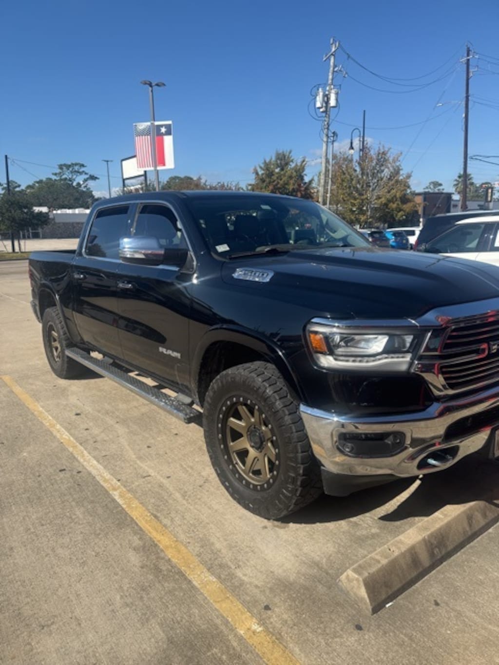 This 2019 Ram 1500 Laramie in Diamond Black Crystal Pearlcoat includes the following features: HEMI 5.7L V8 Multi Displacement VVT 8-Speed Automatic 4WD Chrome Appearance Group (Wheel to Wheel Side Steps), Laramie Level 1 Equipment Group (Single Disc Remote CD Player), Quick Order Package 27H Laramie, 1500 Laramie, 4D Crew Cab, HEMI 5.7L V8 Multi Displacement VVT, 8-Speed Automatic, 4WD, Diamond Black Crystal Pearlcoat, Lt Frost Beige/Mountain Leather, #1 Seat Foam Cushion, 1-Yr SiriusXM Guardian Trial, 10 Speakers, 3 Rear Seat Head Restraints, 33 Gallon Fuel Tank, 4 Way Front Headrests, 4-Wheel Disc Brakes, 48V Belt Starter Generator, 5-Year SiriusXM Traffic Service, 5-Year SiriusXM Travel Link Service, 8.4" Touchscreen Display, ABS brakes, Adjustable pedals, Air Conditioning, Alloy wheels, AM/FM radio: SiriusXM, Anti-Spin Differential Rear Axle, Apple CarPlay, Apple CarPlay/Android Auto, Audio memory, Auto-dimming door mirrors, Auto-dimming Rear-View mirror, Automatic temperature control, Brake assist, Bumpers: chrome, Compass, Delay-off headlights, Deployable Bed Step, Disassociated Touchscreen Display, Driver door bin, Driver Seat Memory, Driver vanity mirror, Dual front impact airbags, Dual front side impact airbags, Electronic Stability Control, For Details, Visit DriveUconnect.com, Front & Rear Rubber Floor Mats, Front anti-roll bar, Front Center Armrest w/Storage, Front dual zone A/C, Front fog lights, Front reading lights, Front Seat Back Map Pockets, Front wheel independent suspension, Fully automatic headlights, Garage door transmitter, Google Android Auto, GPS Antenna Input, GPS Navigation, HD Radio, Heated door mirrors, Heated Front Seats, Heated front seats, Heated Steering Wheel, Heated steering wheel, Illuminated entry, Integrated Center Stack Radio, Leather steering wheel, Leather Trim 40/20/40 Bench Seat, Low tire pressure warning, Manufacturer's Statement of Origin, Memory seat, No Satellite Coverage w/HI/AK/PR/VI/GU, Occupant sensing airbag, Outside temperature display, Overhead airbag, Overhead console, Panic alarm, ParkView Rear Back-Up Camera, Passenger door bin, Passenger vanity mirror, Pedal memory, Power 4-Way Driver Lumbar Adjust, Power 4-Way Passenger Lumbar Adjust, Power 8-Way Driver & Passenger Seats, Power door mirrors, Power driver seat, Power passenger seat, Power steering, Power windows, Radio data system, Radio: Uconnect 4 w/8.4" Display, Radio: Uconnect 4C Nav w/8.4" Display, Rear anti-roll bar, Rear seat center armrest, Rear step bumper, Rear Underseat Compartment Storage, Rear Wheelhouse Liners, Rear window defroster, Remote keyless entry, Security system, SiriusXM Satellite Radio, SiriusXM Traffic Plus, SiriusXM Travel Link, Speed control, Split folding rear seat, Steering wheel mounted audio controls, Tachometer, Telescoping steering wheel, Tilt steering wheel, Traction control, Trailer Brake Control, Trip computer, Turn signal indicator mirrors, Variably intermittent wipers, Ventilated Front Seats, Ventilated front seats, Voltmeter, Wheels: 18" x 8" Aluminum Base Painted, and Wheels: 20" x 9" Premium Paint/PolisheD. Recent Arrival!