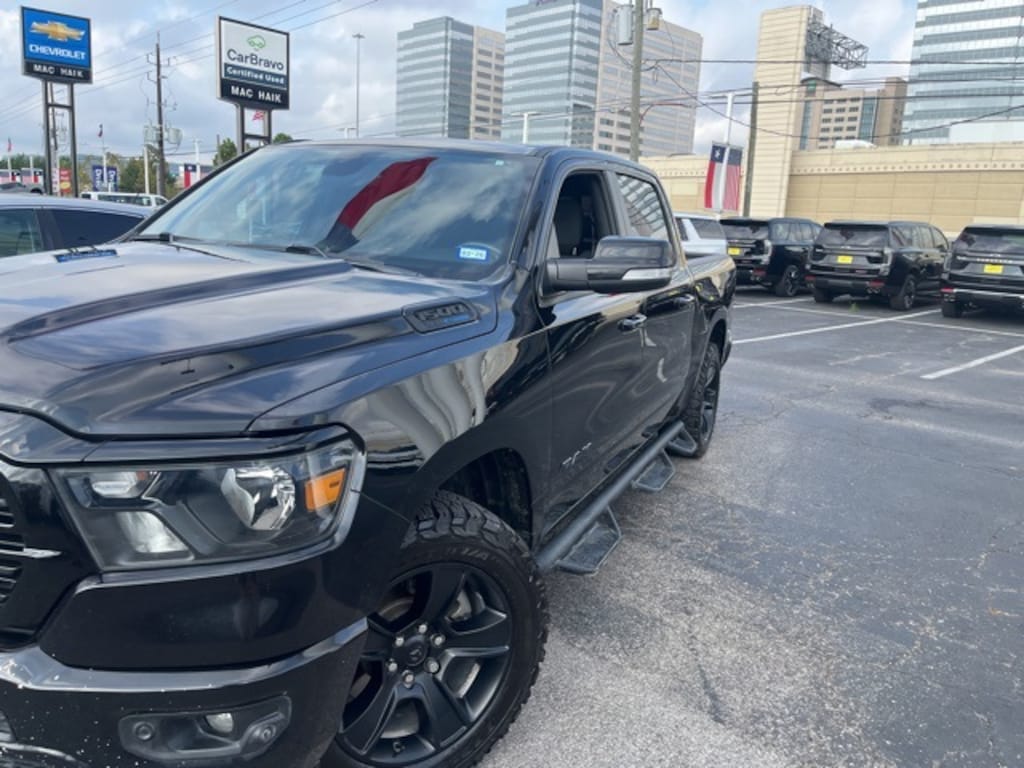 This 2022 Ram 1500 Big Horn/Lone Star in Diamond Black Crystal Pearlcoat includes the following features: HEMI 5.7L V8 Multi Displacement VVT 8-Speed Automatic 4WD Big Horn Level 2 Equipment Group (115V Auxiliary Power Outlet, 400W Inverter, Air Conditioning ATC w/Dual Zone Control, Apple CarPlay, Auto-Dimming Rear-View Mirror, Black Exterior Mirrors, Black Premium Power Mirrors, Bluetooth Handsfree Phone & Audio, Class IV Receiver Hitch, Cluster 7.0" TFT Color Display, Connectivity - US/Canada, Convex Wide-Angle Mirror Insert, For Details, Visit DriveUconnect.com, Global Telematics Box Module (TBM), Google Android Auto, GPS Antenna Input, Heated Steering Wheel, Integrated Center Stack Radio, ParkSense Front/Rear Park Assist w/Stop, Power 2-Way Driver Lumbar Adjust, Power 8-Way Driver Seat, Power-Folding Mirrors, Radio: Uconnect 5 W w/8.4" Display, Rear Dome w/On/Off Switch Lamp, Rear Power Sliding Window, Rear Window Defroster, Remote Start System, Security Alarm, SiriusXM Radio Service, SiriusXM Satellite Radio, Sun Visors w/Illuminated Vanity Mirrors, and USB Host Flip), Night Edition (DISC) (3 Rear Seat Head Restraints, 4 Way Front Headrests, Anti-Spin Differential Rear Axle, Black Exterior Truck Badging, Black Headlamp Bezels, Bucket Seats, Deluxe Cloth Bucket Seats, Dual Exhaust w/Black Tips, Front Seat Back Map Pockets, Full Length Floor Console, Rear 60/40 Folding Seat, Rear Center Armrest, and Wheels: 20" x 9.0" Premium Paint/Polished (DISC)), Quick Order Package 27R Lone Star (Regional), 1500 Big Horn/Lone Star, 4D Crew Cab, HEMI 5.7L V8 Multi Displacement VVT, 8-Speed Automatic, 4WD, Diamond Black Crystal Pearlcoat, Black Cloth, 26 Gal. Fuel Tank (Replace 23 Gal.) (DISC), 3.21 Rear Axle Ratio, 4-Wheel Disc Brakes, 48V Belt Starter Generator, 6 Speakers, 9 Amplified Speakers w/Subwoofer, ABS brakes, Air Conditioning, Alloy wheels, AM/FM radio, Brake assist, Bumpers: chrome, Cloth Bench Seat, Compass, Delay-off headlights, Driver door bin, Dual front impact airbags, Dual front side impact airbags, Electronic Stability Control, Emergency communication system: SiriusXM Guardian, Front anti-roll bar, Front Center Armrest w/Storage, Front fog lights, Front License Plate Bracket, Front reading lights, Front wheel independent suspension, Fully automatic headlights, Heated door mirrors, Illuminated entry, Integrated Voice Command w/Bluetooth, Leather steering wheel, Low tire pressure warning, MOPAR Front & Rear Rubber Floor Mats, Occupant sensing airbag, Outside temperature display, Overhead airbag, Overhead console, Panic alarm, ParkView Rear Back-Up Camera, Passenger door bin, Passenger vanity mirror, Power door mirrors, Power steering, Power windows, Radio data system, Radio: Uconnect 3 w/5" Display, Rear anti-roll bar, Rear seat center armrest, Rear step bumper, Remote keyless entry, Speed control, Split folding rear seat, Steering wheel mounted audio controls, Tachometer, Telescoping steering wheel, Tilt steering wheel, Traction control, Trip computer, Variably intermittent wipers, Voltmeter, and Wheels: 18" x 8" Cast-Aluminum PainteD. Recent Arrival!