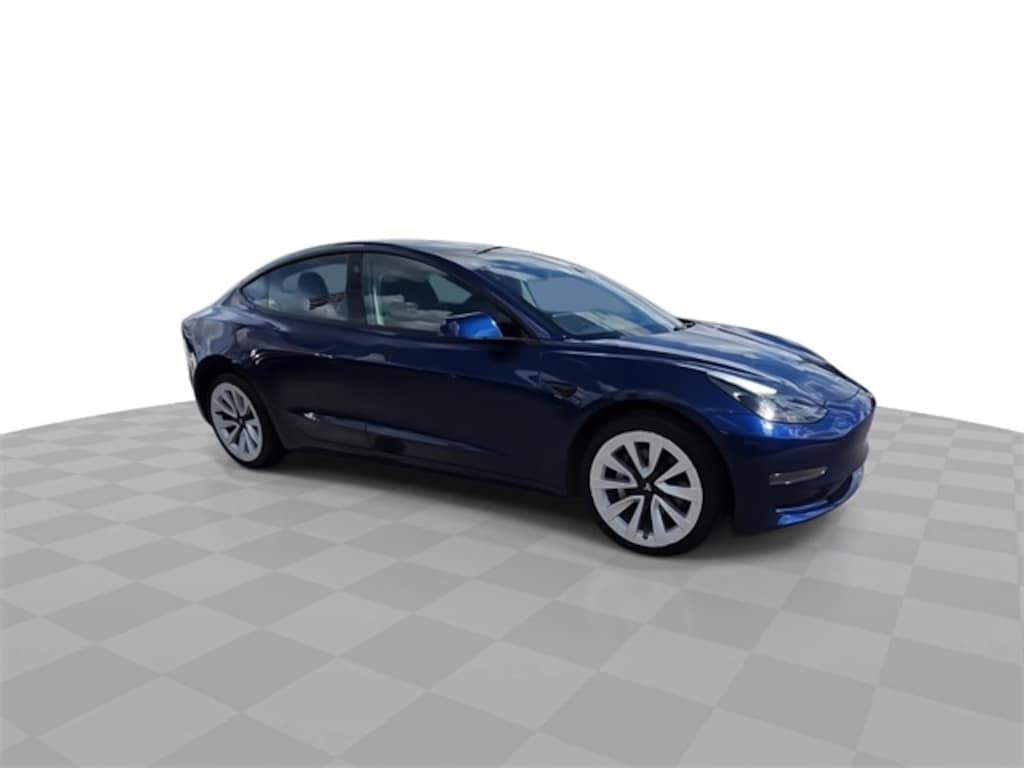 This 2022 Tesla Model 3 in Deep Blue Metallic includes the following features: Electric Motor 1-Speed Automatic RWD 4-Wheel Disc Brakes, 8 Speakers, ABS brakes, Air Conditioning, Alloy wheels, Audio memory, Auto High-beam Headlights, Auto-dimming door mirrors, Auto-dimming Rear-View mirror, Automatic temperature control, Brake assist, Bumpers: body-color, Compass, Delay-off headlights, Driver door bin, Driver vanity mirror, Dual front impact airbags, Dual front side impact airbags, Electronic Stability Control, Exterior Parking Camera Rear, Four wheel independent suspension, Front anti-roll bar, Front Bucket Seats, Front Center Armrest, Front dual zone A/C, Front reading lights, Fully automatic headlights, Genuine wood dashboard insert, Heated door mirrors, Heated front seats, Heated rear seats, Heated steering wheel, HVAC memory, Illuminated entry, Knee airbag, Lane Departure Warning System, Low tire pressure warning, Memory seat, Navigation System, Occupant sensing airbag, Outside temperature display, Overhead airbag, Passenger door bin, Passenger vanity mirror, Power door mirrors, Power driver seat, Power passenger seat, Power steering, Power windows, Premium Heated Front Bucket Seats, Premium Seat Trim, Radio data system, Radio: Upgraded Audio System, Rain sensing wipers, Rear reading lights, Rear seat center armrest, Rear window defroster, Security system, Speed control, Speed-sensing steering, Split folding rear seat, Steering wheel memory, Steering wheel mounted A/C controls, Steering wheel mounted audio controls, Telescoping steering wheel, Tilt steering wheel, Traction control, Trip computer, Variably intermittent wipers, and Wheels: 18" x 8.5" Aero. 138/126 City/Highway MPG