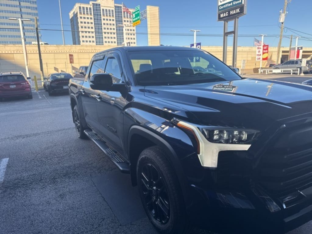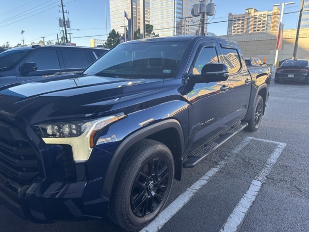 This 2025 Toyota Tundra Limited in Midnight Black Metallic includes the following features: 3.4L V6 10-Speed Automatic RWD Black Artificial Leather, 20" x 8J Alloy Wheels, 3.31 Axle Ratio, 4-Wheel Disc Brakes, 9 Speakers, ABS brakes, Air Conditioning, Alloy wheels, AM/FM Radio, AM/FM radio: SiriusXM, Apple CarPlay/Android Auto, Auto High-beam Headlights, Auto-dimming door mirrors, Auto-dimming Rear-View mirror, Automatic temperature control, Brake assist, Bumpers: body-color, Delay-off headlights, Driver door bin, Driver vanity mirror, Dual front impact airbags, Dual front side impact airbags, Electronic Stability Control, Emergency communication system: Safety Connect (10-year trial), Exterior Parking Camera Rear, Front anti-roll bar, Front Bucket Seats, Front Center Armrest, Front dual zone A/C, Front fog lights, Front reading lights, Front wheel independent suspension, Fully automatic headlights, Garage door transmitter: HomeLink, Heated & Ventilated Front Bucket Seats, Heated door mirrors, Heated front seats, Illuminated entry, Knee airbag, Leather Shift Knob, Low tire pressure warning, Memory seat, Navigation System, Occupant sensing airbag, Outside temperature display, Overhead airbag, Overhead console, Panic alarm, Passenger door bin, Passenger vanity mirror, Power door mirrors, Power driver seat, Power passenger seat, Power steering, Power windows, Radio data system, Rear reading lights, Rear seat center armrest, Rear step bumper, Rear window defroster, Remote keyless entry, Security system, SofTex Seat Trim, Speed control, Speed-sensing steering, Split folding rear seat, Steering wheel mounted audio controls, Tachometer, Telescoping steering wheel, Tilt steering wheel, Traction control, Trip computer, Turn signal indicator mirrors, Variably intermittent wipers, Ventilated front seats, and Voltmeter. Recent Arrival!